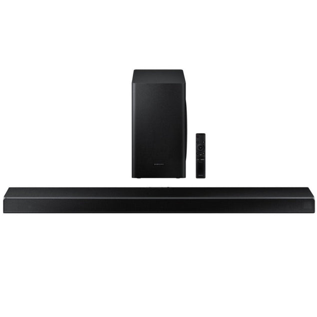 Enhance your home entertainment experience with the Samsung Cinematic Soundbar with Subwoofer HW-Q60T/XU. This sleek and powerful sound system delivers immersive audio, bringing your favorite movies, music, and TV shows to life with crystal-clear sound quality. The included subwoofer adds deep, rich bass to your audio, creating a dynamic and cinematic listening experience. With advanced technology like Acoustic Beam and Adaptive Sound, this soundbar automatically adjusts to deliver the best audio for whatever you're watching or listening to. Plus, with Bluetooth connectivity, you can easily stream music from your smartphone or tablet. Elevate your home theater setup with the Samsung Cinematic Soundbar and enjoy a truly immersive audio experience like never before.