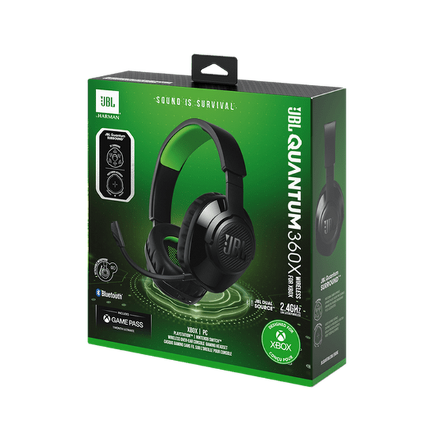 Enhance your gaming experience with the JBL Quantum 360X Xbox Wireless Gaming Headset in sleek black and green. Designed specifically for Xbox, this headset delivers immersive sound quality with JBL's signature audio technology. The QuantumSURROUND sound technology creates a realistic 3D audio experience, allowing you to pinpoint the direction of every sound in the game. Enjoy the freedom of wireless gaming with up to 14 hours of battery life and a comfortable lightweight design. The detachable boom microphone ensures crystal-clear communication with your teammates, while the customizable RGB lighting adds a touch of personalization to your gaming setup. Elevate your gameplay with the JBL Quantum 360X and immerse yourself in a whole new level of audio excellence.