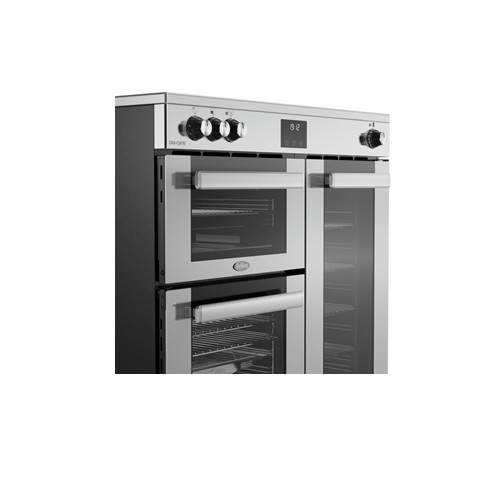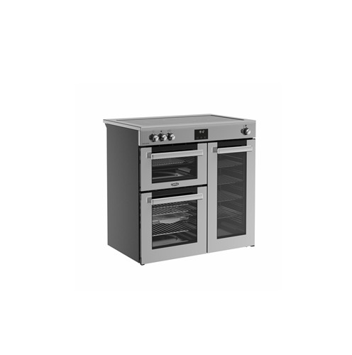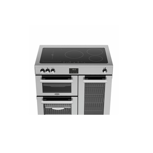 90cm Cookcentre, Belling, AA Rated, 5 induction Zones with bridging link, 33 litre grill, 60 litre fan oven, 81 litre tall fan oven, Air fry function with tray, Maxi clock touch programmable timer, Easy Clean enamel Interior, Stainless Steel 90cm Cookcentre 5 Induction Zones Main Oven Air-Fry Function Touch Control Programmable Timer