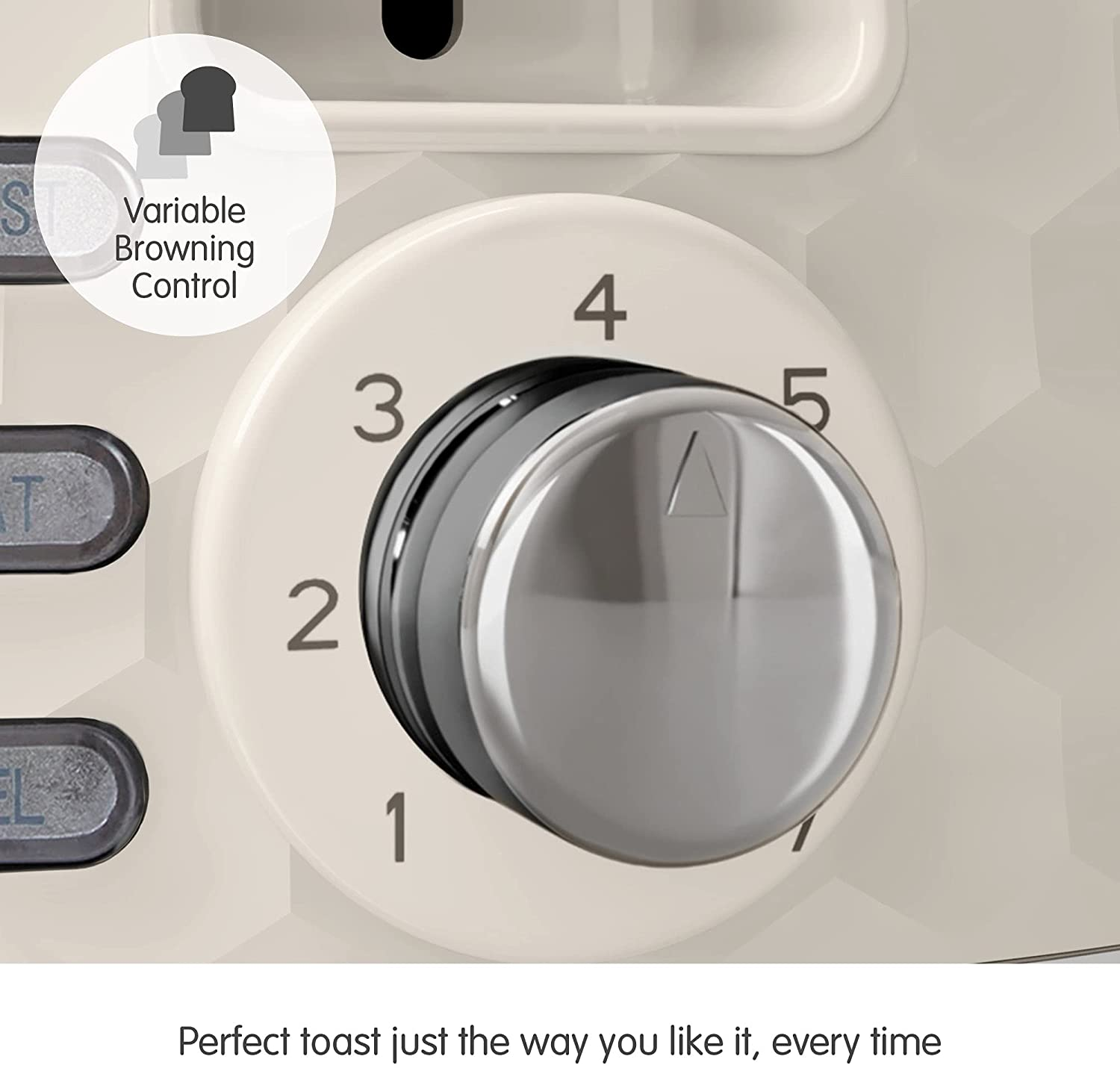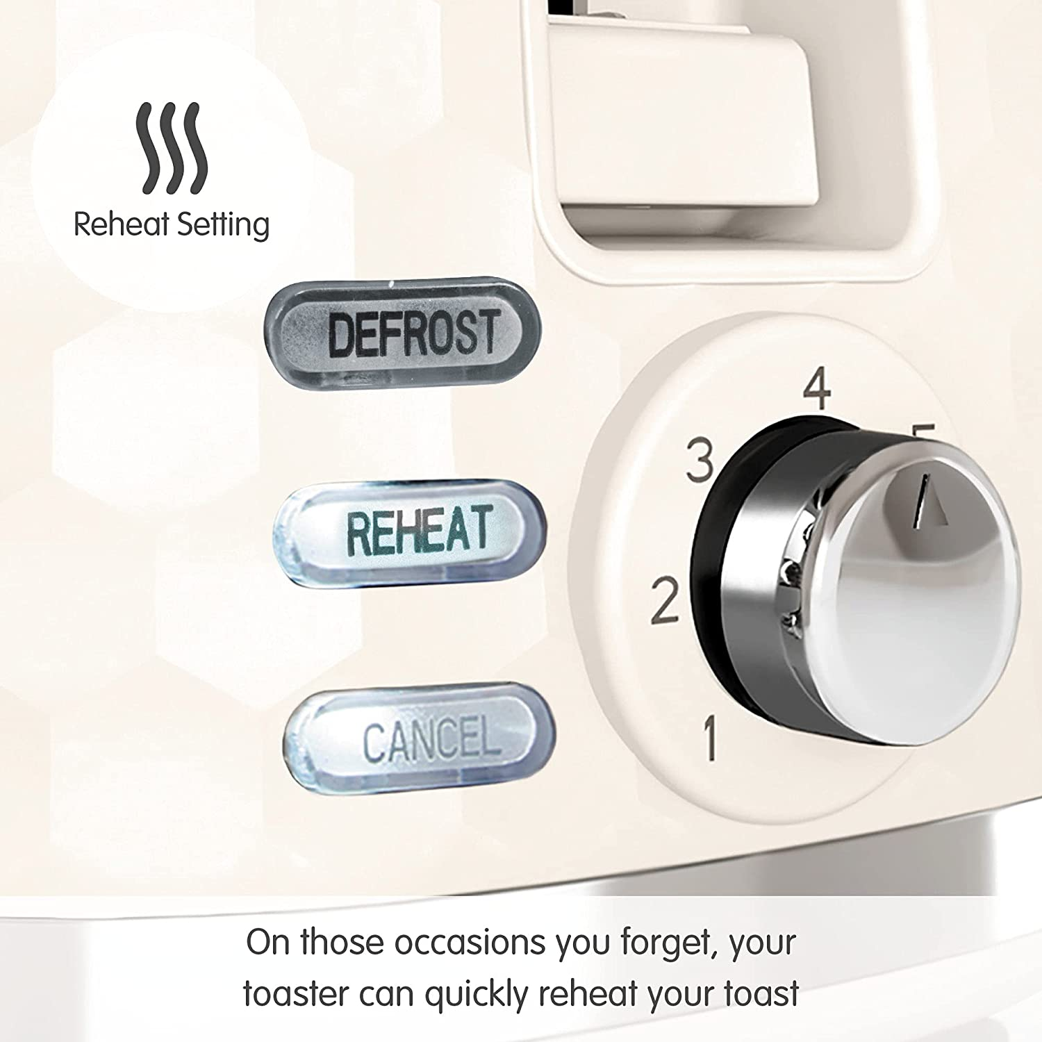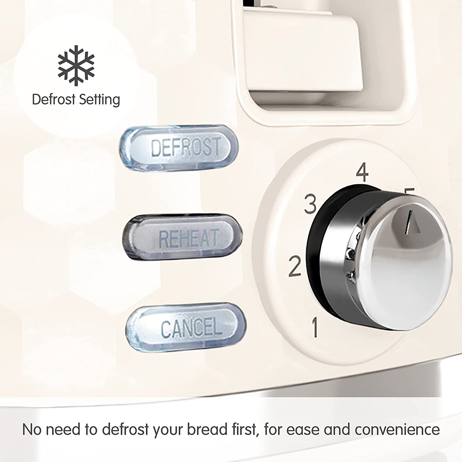 Defrost Setting For added convenience, the Hive toaster includes a ‘defrost’ setting, allowing you to toast directly from frozen and saving you time. Reheat Setting We have also included a ‘reheat’ setting, so you can quickly warm up your toast if you happen to forget about it. Variable Browning Control Everyone has their own preference when it comes to how they like their bread toasted – with seven different settings, you can be sure to get perfect toast for everyone, every time. Removable Crumb Tray The handy crumb tray collects any crumbs so that they don’t mucky your work surface – the tray is removable too, for easy cleaning. Cord Tidy The built-in cord tidy enables you to keep your worktop clutter free by concealing any excess, unneeded cord