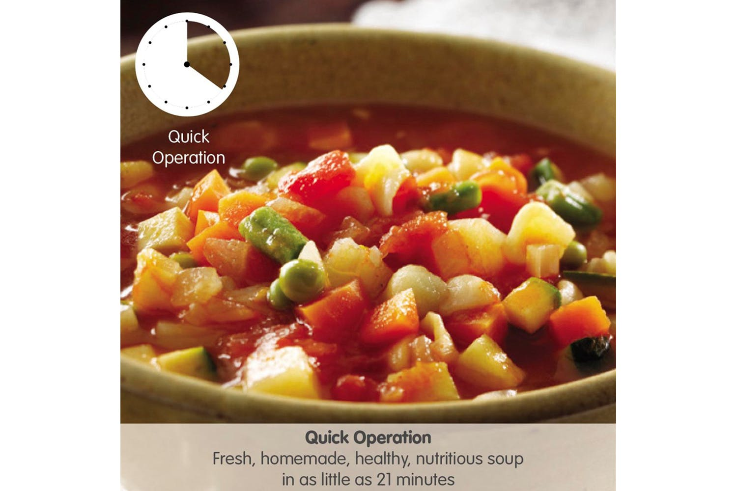 Morphy Richards Soup Maker 501022 Stainless Steel In as little as 21mins, you can be sitting down with a bowl of fresh, homemade and nutritious soup. Unlike shop-bought soup, this soup will be made to your own personal taste and consistency. Add your remaining ingredients to the soup maker and select the Smooth or Chunky setting. The Smooth programme blends and gently cooks soup in just 21mins, while the Chunky programme cooks wholesome soup with thicker consistency in 28mins. Simple Steps The Soup Maker is designed to be quick and easy to use. Simply prepare and chop your ingredients into small pieces, place them inside the soup maker and choose either the smooth or chunky setting. For best results chop your ingredients to 1 cm – 2 cm pieces to allow quicker cooking and better blending. The easy to use control panel features an LED countdown display that shows exactly how long your soup has left to cook while you just sit back and let your soup maker do the hard work for you. Made to Your Taste The Smooth programme blends and gently cooks soup in just 21 minutes, while the Chunky programme cooks wholesome soup with a thicker consistency in 28 minutes. If your soup is a little too chunky for your liking, just press the Blend button until the texture of the soup is to your taste. Stylish, Functional and Practical This stylish soup maker fits well into any style of kitchen, and with an innovative top-down design that allows for a large 1.6 litre jug, you can make enough soup for up to four servings at once. Keep Warm This added function keeps your soup warm automatically after your selected programme has finished. Easy Clean The Clean Mode makes it easy to maintain your Soup Maker. After you’ve enjoyed your meal, just give the jug a quick rinse under the tap, wipe it with a soapy sponge and your soup maker is ready for next time.