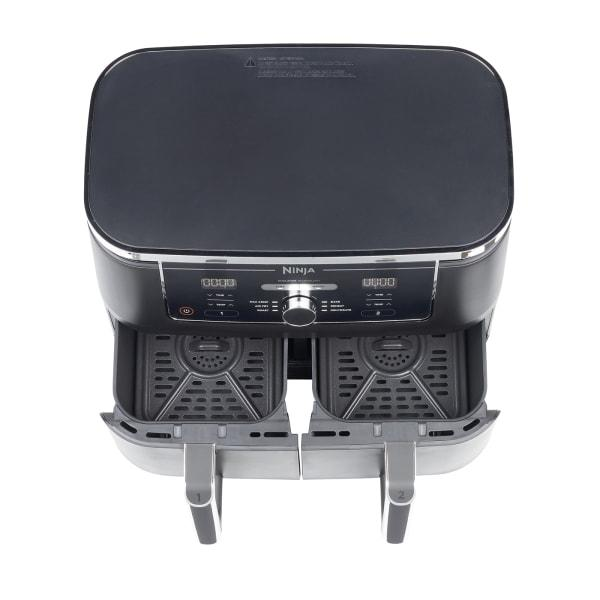 Take mealtimes to the MAX with the large capacity air fryer that cooks 2 foods, 2 ways, and finishes at the same time. More than an air fryer. 6 ways to cook – Max Crisp, Roast, Bake, Reheat, Dehydrate and Air Fry. Introducing the ultimate mealtime solution, perfect for feeding the whole household. With a large capacity and 2 independent cooking zones, the Ninja Foodi MAX Dual Zone 9.5L Air Fryer does the thinking and timing for you. Mix and match cooking programs, times and temperatures across both drawers to create delicious meals in moments! SYNC to cook different foods in each drawer – both ready to serve at exactly the same time! MATCH settings across both drawers to double your serving size. Cook up to 25% more† – easily fit a 2kg chicken in each drawer! Up to 75% faster than fan ovens. Up to 75% less fat than traditional frying methods. Take mealtimes to the MAX with the large capacity air fryer that cooks 2 foods, 2 ways, and finishes at the same time. More than an air fryer. 6 ways to cook – Max Crisp, Roast, Bake, Reheat, Dehydrate and Air Fry. 2 INDEPENDENT COOKING ZONES When it comes to cooking, timing is everything. Perfect for families and large households, the Ninja Foodi MAX Dual Zone 9.5L Air Fryer does the thinking and timing for you. Cook 2 different foods with different temperatures, times and settings in 2 separate cooking drawers – and have both ready to serve at exactly the same time using the SYNC feature! More people to feed? MATCH settings across both zones to make double the amount of food in the same amount of time! SYNC With the SYNC feature you can cook two different foods using different times, temperatures and programs – both are ready to serve at the same time! Want to Bake in one drawer and Air Fry in the other? No problem! Different cooking times for roast chicken and crispy fries? Both zones finish cooking at the same time, so you can enjoy freshly-cooked mains and sides together – no need to use different appliances or let your side go cold while your main finishes cooking! Whether it’s a whole 2kg chicken and fluffy roast potatoes, baked salmon and Mediterranean vegetables or juicy beef koftas and golden chips, your perfect pairing is just moments away. Cooking for two different dietary requirements? Cater for everyone by cooking vegetarian food in one drawer and meat in the other. MATCH Cooking for extra guests or feeding the whole family? Use the MATCH feature to double your serving size, with the same cooking program and time across both drawers. Cook the same food in both zones to make twice the amount of food in the same amount of time! Or easily cook two different foods with the same cooking instructions. Just cooking for yourself? No problem – you can cook in a single drawer. FEED THE FAMILY This extra-large capacity air fryer cooks up to 25% more. You can fit a 2kg chicken or up to 1.4kg of fries in each 4.75L drawer – that means you can easily create a complete meal of a whole roast chicken and crispy air fried chips, cooked in one appliance and ready to eat at the same time! Easily feed 8+ people or just make enough for yourself. Up to 75% faster than fan ovens, quickly and easily create a delicious variety of meals that the whole family will love. MORE THAN AN AIR FRYER Get creative with 6 customisable cooking functions: Air Fry – Up to 75% less fat than traditional frying methods. Enjoy guilt-free fried favourites using little to no oil. From delicious chicken wings, fish and chips, burgers and sausages to tasty fajitas, sweet potato fries and chunky chips. How does air frying work? Super-hot air is evenly circulated around food to remove excess moisture and give it a delicious golden finish. Max Crisp – Cook from frozen to crispy in minutes. Temperatures of 240°C evenly cook and crisp your favourite frozen foods. From breaded scampi and chicken nuggets to golden French fries, onion rings and more. Perfect for quick, delicious dinners. Roast – Not just for Sundays, enjoy your favourite roast meat, fish and vegetables any day of the week. From a roast chicken, salmon fillets, golden chicken breasts and roast pork chops with crispy crackling to fluffy roast potatoes, balsamic-roasted tomatoes and sweet potato hash. Bake – Easily cook pasta bakes with a crispy topping. Enjoy freshly-baked bread and homemade sweet treats, from muffins and brownies to cakes and cookies. Dehydrate – Create delicious dried fruit snacks, from apple to mango, banana to pineapple. Enjoy homemade vegetable crisps, beef jerky, and even make your own dried herbs. Reheat – Restore leftovers to that delicious fresh-out-of-the-oven finish, perfect for reviving leftover pizza, quiche, spring rolls and more. The easy-to-use digital control panel with a countdown timer makes it easy to see how much cooking time is left. Variable temperature controls let you make every snack and meal just how you like it. The innovative Auto-Adjust Fan automatically changes speeds based on the cooking function selected. Washing up is easy thanks to non-stick, dishwasher-safe parts. Our best air fryer for large households, get started straight away with a Chef-Created Recipe Guide included in the box, packed with Ninja Air Fryer recipes to kick-start your imagination. FEATURES: 2 INDEPENDENT COOKING ZONES Different foods, different times, different programs – both ready at the same time! With 2 separate cooking drawers, you can SYNC or MATCH cooking programs and times for total versatility. Cook up to 25% more† – the extra-large 9.5L capacity feeds 8+ people. Each drawer fits up to 1.4kg of fries or a 2kg chicken. †Compared to AF300UK, 7.6L. UP TO 75% FASTER THAN FAN OVENS Enjoy delicious food, cooked in under half the time of a fan oven. Perfect when you need to get dinner on the table quickly. *Tested against fish fingers and sausages, including preheat. UP TO 75% LESS FAT Up to 75% less fat than traditional frying methods. Using little to no oil, 