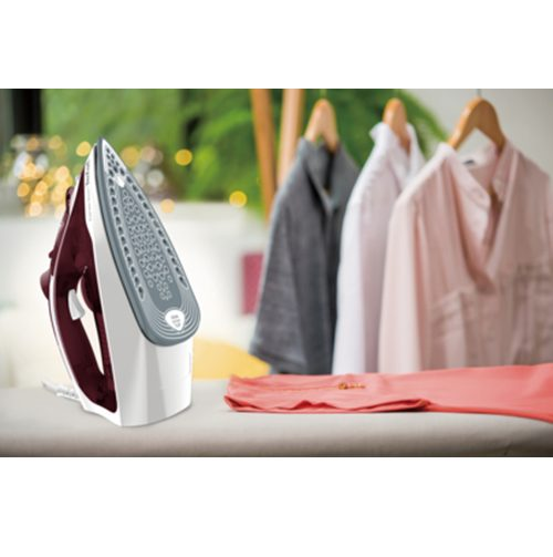 Efficient: Iron faster and more easily using powerful steam Effortless: Glide through ironing with a smooth ceramic soleplate Convenient: Avoid constant refills with a large, easy-to-fill water tank Safe: Enjoy peace of mind thanks to anti-drip and auto-off features Speed through your weekly ironing with the Tefal Express Steam iron. This powerful Tefal iron is packed with enhanced features to make the task quick and easy. At 2600W, it heats up rapidly so you arenāt kept waiting, and produces up to 20% more steam* so creases disappear even faster. Weāre talking a continuous steam output of up to 45g/min that leaves clothes crease-free in no time, plus an extra-powerful 190g/min steam boost that tames even the most rebellious of creases with ease. Express Steamās specially designed ceramic soleplate glides smoothly over any fabric, meaning all your ironing takes less effort. For convenience, this steam iron has a generous and easy-to-fill water tank, allowing you to iron more clothes in one go and refill without any spills. Thereās even a handy water level indicator, so you know when itās time for a top-up. Express Steam also has a nifty spray function to dampen fabrics, making it even easier to iron out creases. And donāt worry about stains from water droplets; this Tefal iron has a clever anti-drip feature to keep your clothes spotless, so you can iron with confidence at any temperature. For added peace of mind, this iron turns itself off if left unattended.