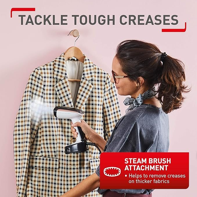 The perfect fit: the first foldable garment steamer, perfect for slipping into a travel bag or taking up minimal storage space. Ready for action A rapid heat-up time of just 15 seconds means it won’t hold you back when you’re in a rush. All the power you need: For a compact steamer it packs a whole 1300W of punch. It’ll give you the results you’re looking for Stay fresh on the go: The intense steam kills bacteria, mites, odors, pollen and allergens, letting you go longer between washes. Safe for all clothes: Steam is safe and gentle on your entire wardrobe, even the most delicate fabrics, such as silk.