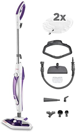 Vaporetto SV440 Double combines a steam mop and handheld cleaner to treat up to 15 different surfaces. Lightweight and handy, kills and removes 99.9% of germs and bacteria. As well as ensuring in-depth hygiene spreads a fresh fragrance throughout the home via the built-in dispenser for the exclusive Frescovapor deodoriser. 2 products in 1: steam mop and handheld cleaner Multi Surface (15 IN 1) – Thanks to the dual steam mop and handheld cleaner mode, Vaporetto SV440_Double lets you clean up to 15 different surfaces: parquet, tiles, marble, fitted carpets and rugs, hobs, extractor hoods, taps, bathroom fixtures, grouting, windows and mirrors, upholstery (sofas, armchairs, cushions and mattresses), doors and wardrobe doors, radiators, curtains and clothes, plants. Vaporforce Brush – The new brush has a large area for dispensing steam which, combined with the excellent flexibility, lets you reach the most difficult corners ensuring more effective cleaning. Caked dirt will no longer be a problem thanks to the integrated bristles on the back of the brush which add their abrasive action to the steam power. Frescovapor deodoriser – Vaporetto SV440_Double combines the hygienic action of steam with the elimination of bad odours. Thanks to the Frescovapor dispenser, integrated in the brush, the steam is mixed with the deodorant and the result is a clean and fragrant home. Handheld steam cleaner mode – the appliance lets you clean lots of different surfaces for the complete hygiene of the entire house with the advantage of not having to use any detergents. Steam is the most effective solution for a deeply clean home: a single pass eliminates up to 99.9% of viruses, germs and bacteria. (*The Vaporetto steam mop eliminates 99,9% of most common germs and bacteria such as Escherichia coli, Staphylococcus aureus, Pseudomonas aeruginosa, Aspergillus brasiliensis, Salmonella enterica, so long as the surfaces have previously been well vacuumed and the steam mop is used following the instructions of the user manual correctly.) Lightweight and Compact – cleaning effortlessly with Vaporetto SV440_Double: it’s small and manageable and makes household chores easier. Quick and easy set up – Putting on and taking off the cloth is hands-free: to put it on just place the brush above it and press lightly while to remove the cloth after use just place your foot on the tab to keep it on the ground and lift the brush. Heats up in 15 seconds Removable tank – add water without leaving annoying marks on the floor. Just put it under the tap to fill it at any time. Limescale filter – The filter built into the appliance reduces the passage of mineral salts and the formation of limescale, allowing the use of ordinary tap water; (Always refer to the instruction manual to check compatibility with the water hardness in your area). The limescale filter can be replaced easily, ensures better cleaning results and lengthens the life of the appliance.