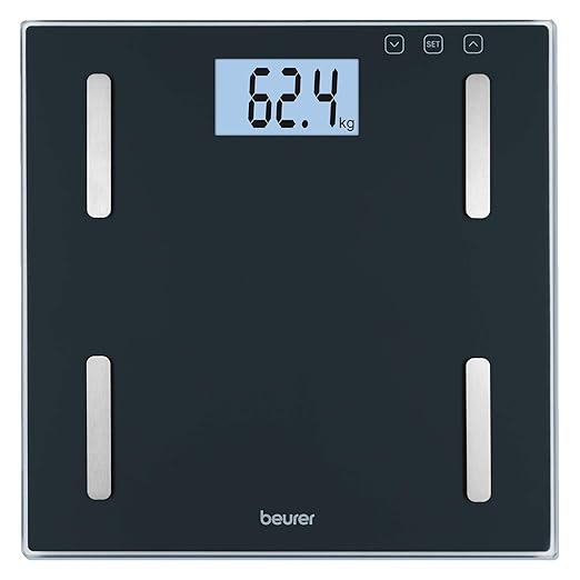 FULL BODY ANALYSIS: Measures body weight, body fat, body water, bone mass and BMI BASIC METABOLIC RATE: Discover your metabolic rate for personalised calorie consumption recommendations (BMR) IT’S ALL IN THE DESIGN: The slim design of the body analysis scale can be stored easily measuring just 19 mm thick ADJUSTABLE: Measure in your unit of choice from kilogram (kg) to pound (lb) or stone (st) at the touch of a button QUICK AND EASY MEASURING: Quick-Start technology activates the scale as you step on and the automatic switch-off function will kick in when you’re done