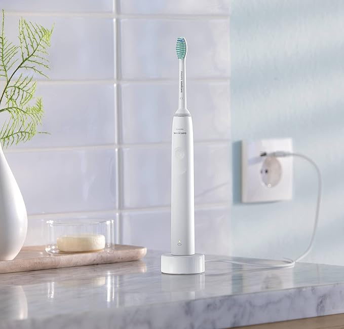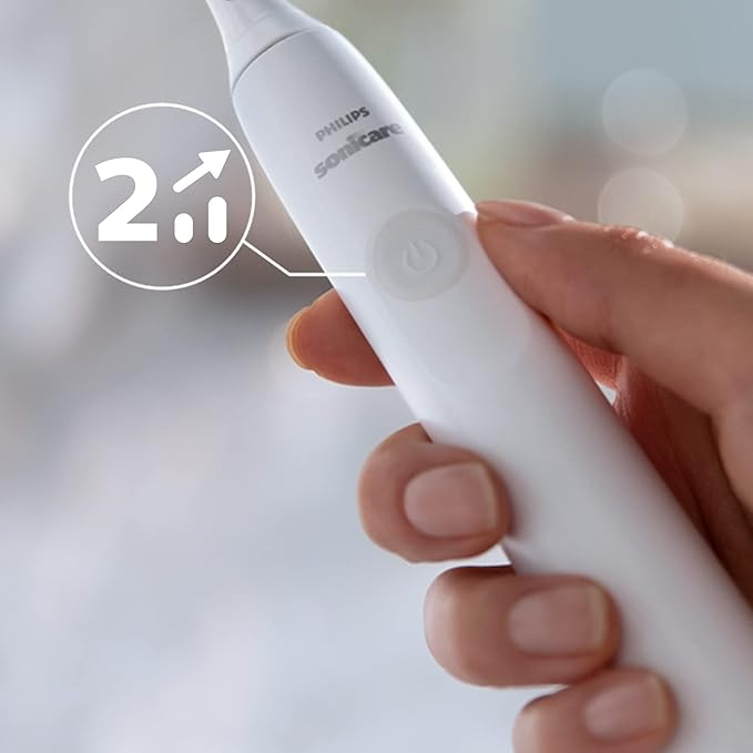 Goodbye manual toothbrush. Hello Sonic technology. Up to 3 x better plaque removal* Sonic technology QuadPacer and SmarTimer Slim ergonomic design 14 day battery life Our unique technology brings you a powerful yet gentle clean Powerful bristle vibrations drive microbubbles deep between your teeth and along your gum line for a refreshing experience. You will get two months’ worth of manual brushing in just 2 minutes.** 31,000 brush strokes per minute gently clean your teeth, break up plaque and sweep it away for an exceptional daily clean. Up to 3 x better plaque removal vs. a manual toothbrush* The Sonicare electric toothbrush with advanced sonic technology is clinically proven to remove plaque up to 3 x better* than a manual toothbrush. It removes plaque from your teeth and along the gum line while protecting your gums. Safe and gentle to use Sonicare toothbrush provides you with a thorough clean without being harsh on your teeth and gums. Gentle yet powerful sonic vibrations provide an exceptional clean while being gentle on your teeth and gums. Optimise your brushing with SmarTimer and QuadPacer 2 minute SmartTimer and 30 second QuadPacer guide you to brush for the recommended time in all areas of your mouth to ensure a complete clean. Ergonomic design makes the toothbrush easy to hold and use Slim, lightweight and ergonomic design makes the toothbrush easy to hold and use so that you get an amazing clean without any strain. 14 day long-lasting battery life Battery life lasts up to 14 days so you can go long periods without charging. Easy-Start to ease the transition Our Easy-Start programme gives you the option of a gradual, gentle increase in brushing power the first 14 times you use your new toothbrush. Use less. Reuse more Power adapters may seem small, but added together, their plastic makes a huge impact on the environment. By switching to a USB charger in our Philips Sonicare 1000-4000 Series alone, we use up to 189,210 kg less plastic every year. That’s powerful, right?
