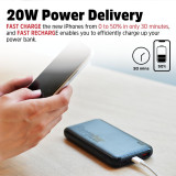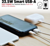 Energizer UE10055PQ provides 10,000mAh high capacity for your daily mobile needs. It is built with triple outputs, including 2 USB-C ouput port and 1 USB-A ouput ports, allowing you to charge 3 devices at once. The USB-C Power Delivery provides 20W fast charge for the new iPhones and other USB-C devices. And the smart USB-A output ports support up to 22.5W fast charge for Android devices. The Power Delivery fast recharge enables you to efficiently charge up your power bank. The compact design makes it easy to carry, and the LED battery life indicator shows the charging status and battery level at a quick glance. Energizer PowerSafe Management ensures protection against short circuits, overcurrent, overcharging, and over-discharging for both your power bank and your devices. 10,000mAh Power Capacity 10,000mAh high capacity can provide extra screen time up to 36 hours for a smartphone, 12 hours for a small tablet, and 8 hours for a large tablet. Triple Outputs Triple output design with 2x USB-C ports and 1x USB-A port that can charge up to 3 devices simultaneously. USB-C Power Delivery USB-C Power Delivery provides 20W fast charge for the new iPhones and other USB-C devices. Smart USB-A Fast Charge Smart USB-A output ports support up to 22.5W fast charge for Android devices.