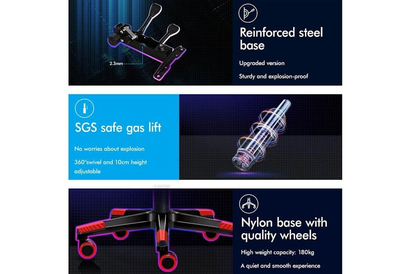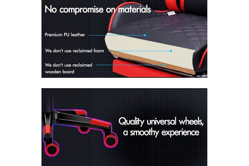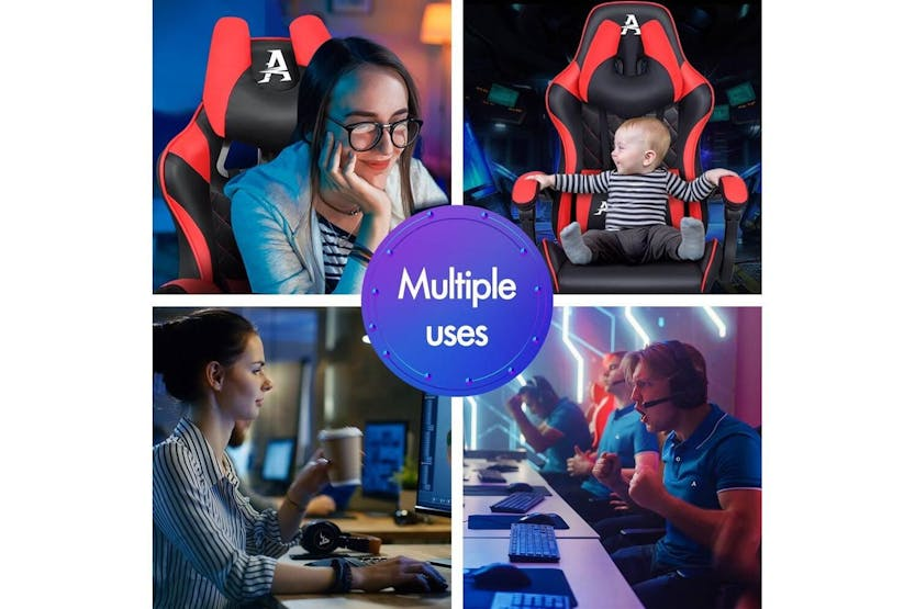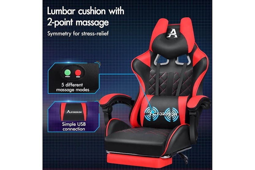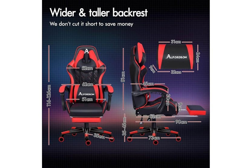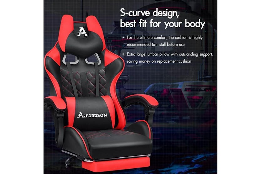Description ONLINE ONLY -FREE DELIVERY Alfordson Comfortable Gaming Office Chair | Faux Leather | Red Upgrade your gaming and work experience with the Alfordson Comfortable Gaming Office Chair, designed for those who demand both style and support. Whether you are a dedicated gamer, a busy professional, or someone who spends long hours at the desk, this high-back chair delivers the ultimate in comfort and durability. Crafted with premium faux leather in a striking red finish, it brings a bold, modern look to any Irish home office or gaming setup. Engineered for performance, the Alfordson chair features a heavy-duty all-metal frame and a wider, taller S-curve backrest that perfectly contours to your body. Say goodbye to back and shoulder strain with the extra-large lumbar pillow and U-shape headrest, both removable and height-adjustable for tailored support. The generous, high-resilience moulded foam padding in the car-seat grade base seat ensures you stay comfortable during marathon gaming sessions or long workdays. Enjoy personalised comfort with up to 150 degrees of back recline adjustment, allowing you to sit upright, recline for a break, or even take a quick nap. The integrated, retractable footrest is perfect for relaxing, while the deluxe padded armrests provide wide, supportive cushioning. Move effortlessly with smooth 360-degree swivel and premium universal wheels, designed for quiet, easy gliding on any surface. Built to last, the Alfordson chair boasts a sporty nylon base that resists dirt and wear, SGS-certified gas lift for reliable height adjustment, and TUV caster wheels for added safety. With a high weight capacity of up to 180kg, this chair is as robust as it is comfortable, making it a smart investment for any Irish gamer or professional seeking ergonomic excellence. Key Features: Premium faux leather in vibrant red for a stylish, modern look Heavy-duty all-metal frame for enhanced durability Wider, taller S-curve backrest for superior ergonomic support Generous, high-resilience moulded foam padding for all-day comfort Up to 150-degree back recline for personalised positioning Removable, height-adjustable extra-large lumbar pillow and U-shape headrest Retractable padded footrest for relaxation Deluxe padded armrests and sporty nylon base Premium universal wheels and smooth 360-degree swivel High weight capacity: supports up to 180kg Specifications: Material: Intertek supreme PU leather (faux leather) Colour: Red Frame: All-metal Seat: Triple-layer (PU leather + resilience foam) Backrest: S-curve, wider and taller Recline: Up to 150 degrees Weight Capacity: 180kg Gas Lift: SGS certified Wheels: TUV caster wheels Base: Sporty nylon Included Items: 1 x Alfordson gaming chair 1 x Assembly manual Transform your workspace or gaming area with the Alfordson Comfortable Gaming Office Chair. Designed for the Irish market, it combines ergonomic innovation, premium materials, and a bold aesthetic to help you perform at your best, every day.