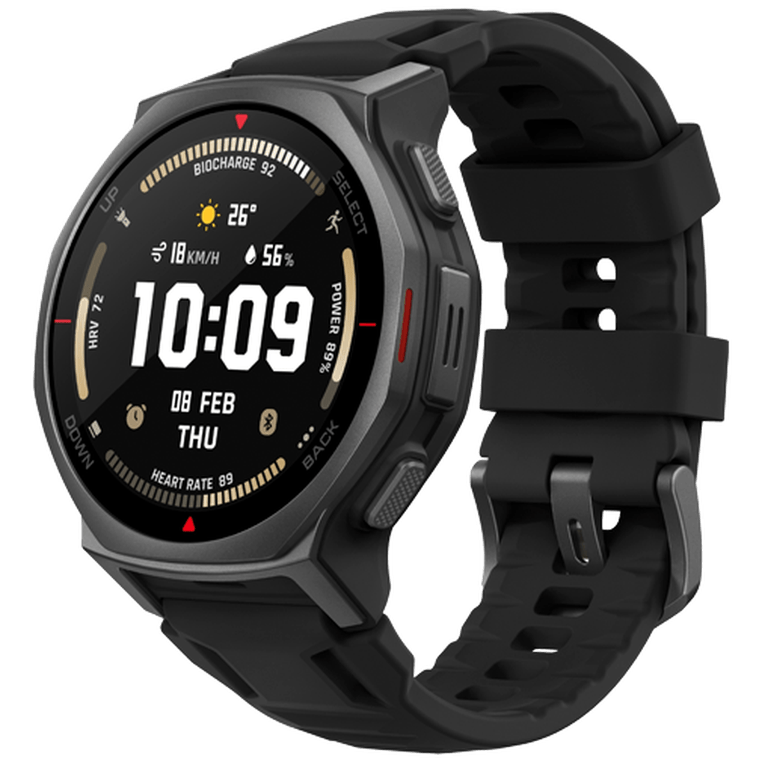 The Amazfit T-Rex 3 Pro 44mm Black smartwatch is a rugged and stylish wearable device designed for outdoor enthusiasts and fitness enthusiasts alike. With a durable black silicone strap, this smartwatch is not only comfortable to wear but also built to withstand the elements, making it the perfect companion for your active lifestyle. Featuring advanced health and fitness tracking capabilities, the Amazfit T-Rex 3 Pro offers comprehensive data on your workouts, heart rate, sleep patterns, and more. Stay connected on the go with notifications for calls, messages, and apps, all displayed on the vibrant 44mm black display. Whether you're hitting the trails or hitting the gym, the Amazfit T-Rex 3 Pro is the ultimate smartwatch for those who demand durability, functionality, and style in one sleek package.