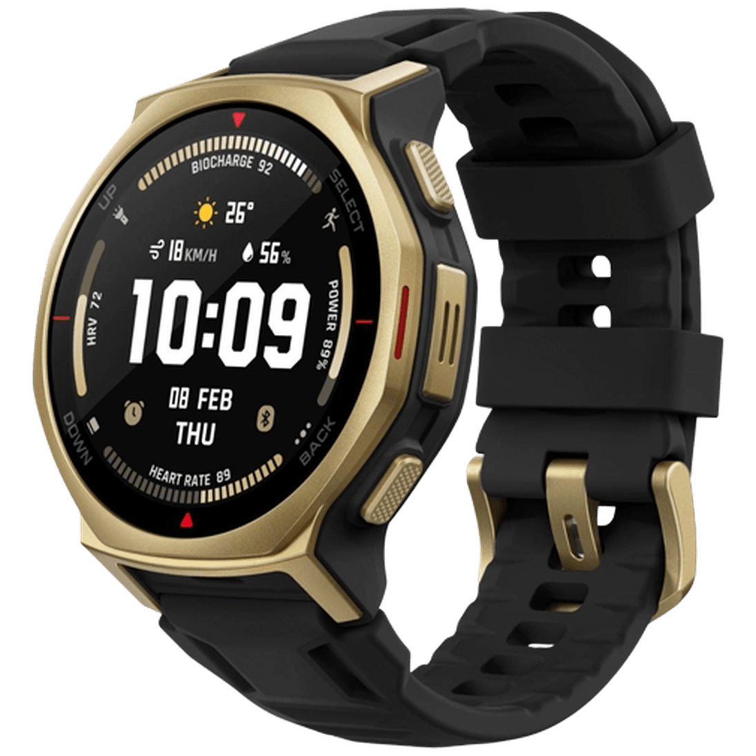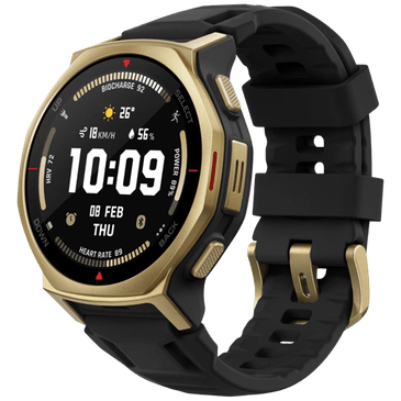 The Amazfit T-Rex 3 Pro in 44mm Gold with a sleek Black Silicone Strap is a rugged yet stylish smartwatch designed for the modern adventurer. With a durable build that meets military-grade standards, this watch is water-resistant up to 100 meters and can withstand extreme temperatures and environments. Equipped with advanced health and fitness tracking features, the T-Rex 3 Pro helps you stay on top of your wellness goals while keeping you connected with notifications and apps. The vibrant AMOLED display ensures clear visibility in any lighting conditions, making it easy to check your stats on the go. Whether you're hitting the trails or heading to the office, the Amazfit T-Rex 3 Pro is the perfect blend of functionality and fashion.