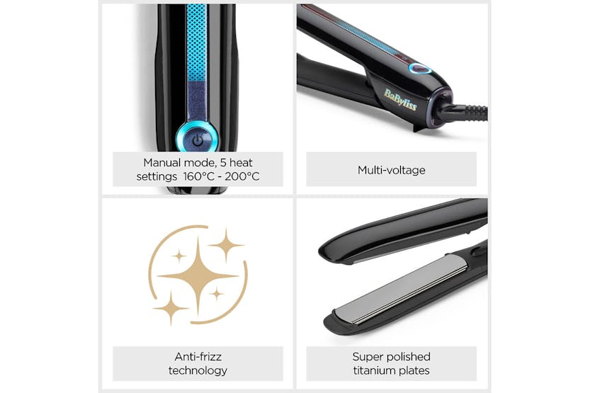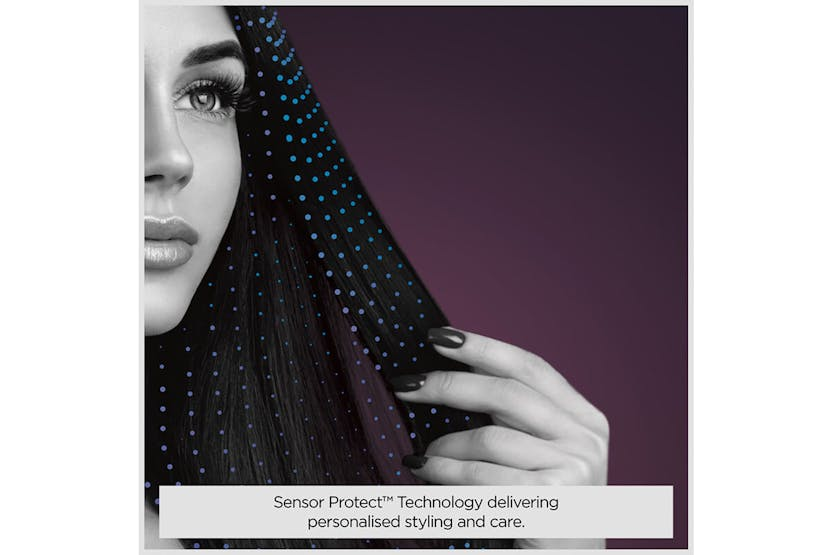 Description Experience advanced, personalised styling with the optimised heat protection straightener that cares for your hair. Ultra-Fast Results Designed to deliver ultra-fast results in a single stroke. With intelligent heat control and personalised settings, it protects your hair while enhancing smoothness and shine. Intelligent Sensor Protect Microprocessor monitors the temperature 50 times a second and automatically adjusts it for your hair giving personalised styling and care. Ultra-Smooth Glide Adaptive floating plates give superior glide and perfect tension for your hair. Lasting Smoothness Super-polished true-titanium plates give fast even heat for single-pass straightening and lasting results. Heat Control 5 adjustable heat settings, 160°C to 200°C, allows for customised styling on all hair types. Anti-Frizz Technology Advanced ionic system eliminates frizz and fly-aways for ultra shine. Auto-Shut Off Automatic safety shut-off after 20 minutes. Multi-Voltage Ideal for worldwide use, making them the perfect travel companion smooth hair on the go. Heat Wrap Ensure safety storage, protecting surfaces from heat damage. Silicone Plate Guard Allows the plates to cool safely and protect from damage. Product Features: Audio indicator 3M salon length swivel cord