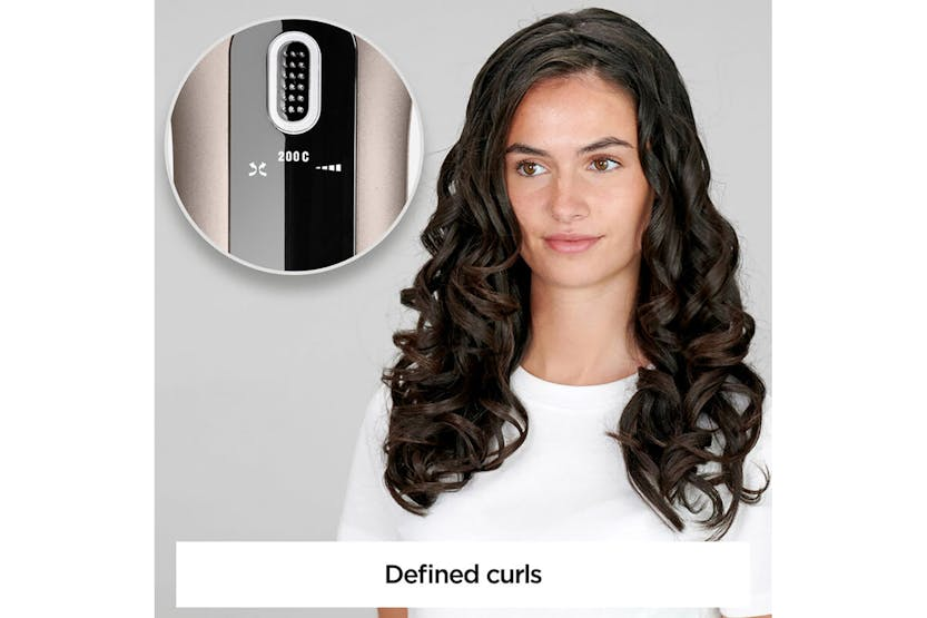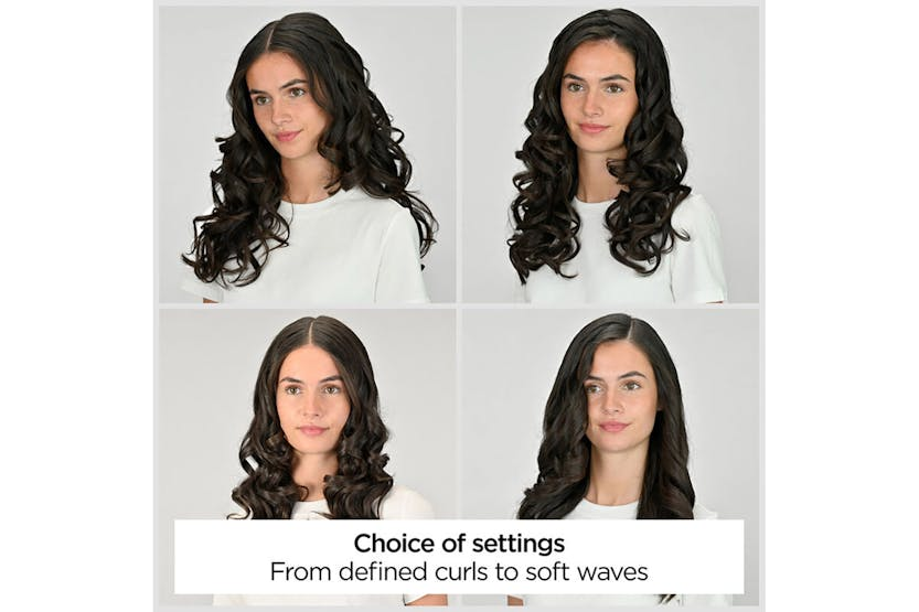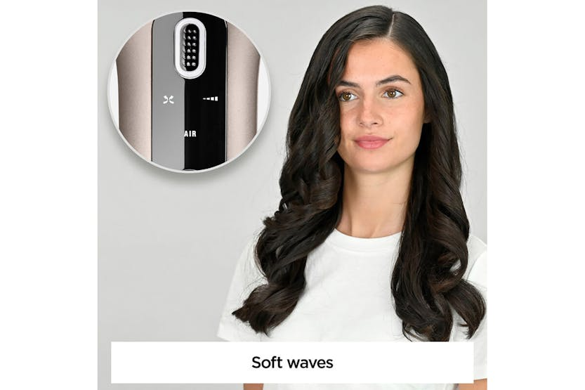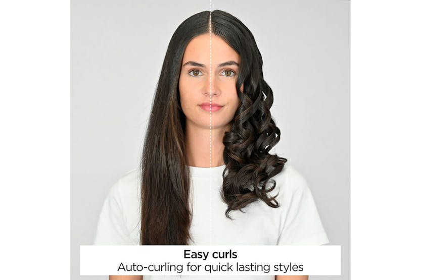 Description Effortlessly create defined curls, soft beach waves, or a soft blow-dry look with this automatic curler and waver. Enjoy safe, easy styling with long-lasting results and a high-shine finish. Advanced Auto-Curl Technology Automatically wraps and styles hair around the barrel for fast, tangle-free results. Perfect for achieving salon-quality curls with minimal effort. Combined Heat & Airflow Gentle heat and airflow work together to style hair from all sides, helping curls and waves last longer while protecting hair from excessive heat. Custom Styling Options Choose from 4 heat/airflow settings, 4 timer settings, and 3 rotation directions to create a variety of looks — from soft waves to defined curls. Heat Control Ideal for everything from effortless blow-dry looks to beachy waves and glam curls. The ceramic barrel and airflow system offer four styling modes: - Airflow only - 170°C - 185°C - 200°C Curl Direction Control Three rotation settings let you customise your curl direction for beachy, natural, or polished looks. Curl Selection Timer Four timer settings help you create different curl formations, giving you control over the tightness and definition of each curl. Product Features: Ultra-fast heat up 25mm ceramic coated barrel Ultra-fast heat up 3 Rotation settings Advert Style secret air Remove and replace air Turn on. Set time, heat, curl direction