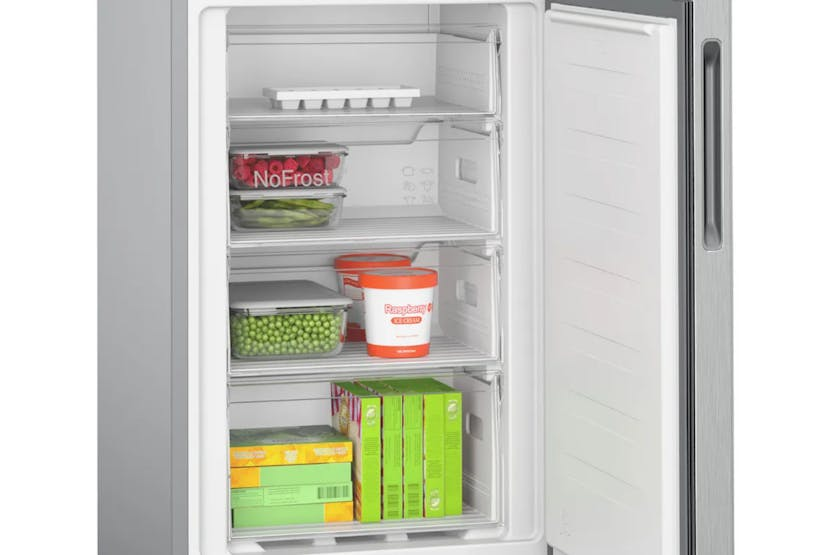 Experience hassle-free maintenance with the Bosch Series 2 Free Standing Fridge Freezer. Say goodbye to defrosting thanks to the NoFrost technology that prevents ice build-up. Enjoy efficient and long-lasting LED lighting that illuminates your fridge contents while saving on electricity. Plus, get 10% back in Harvey Norman Gift Cards when you spend 500 or more on Large Appliances. Make your kitchen upgrade a rewarding experience with the KGN27NLEAG model.