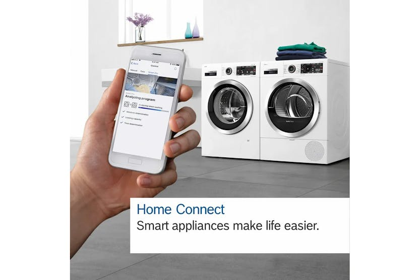 Description Bosch Most Energy Efficient Washing Machine With our energy-saving washing machines, you can get perfect results, whilst saving 20%* more energy than other class A appliances. *20 % more efficient (40 kWh/100 cycles) than the limit value (50 kWh/100 cycles) of the energy efficiency class A according to EU-Regulation 2019/2014 (Retained EU Legislation) Speed Perfect: Cuts the Cycle Time by up to 65%* Without Compromising On Results When time is of the essence, washing machines with Speed Perfect can cut washing time by up to 65%*, without compromising your results. Speed Perfect can be used in combination with most programmes, and with all load sizes and fabric types. For example, you can select the mixed programme along with Speed Perfect to thoroughly wash up to four kilograms of clothes. ** Difference between the duration of Easy Care Programme 40°C and the duration of Easy Care Programme 40°C in combination with SpeedPerfect option. Reduces Wrinkles and Your Ironing Pile Iron Assist is designed to make ironing easier and more efficient, a household chore we often dread. Iron Assist gently steams freshly washed and dried items in just 20 minutes, reducing wrinkles to help reduce your ironing. Enjoy the convenience of Iron Assist and simplify your ironing routine. It can also reduce wrinkles on a previously worn item of clothing. Just place your items in the machine and let Iron Assist do the rest. Extremely Stable and Especially Quiet, Thanks to Special Vibration Protection The innovative Anti Vibration sidewall provides stability and reduces vibrations. The enhanced insulation regulates noise levels, making Bosch washing machines extremely quiet, even during the spin cycle. You can enjoy peace of mind knowing that your Bosch washing machine will operate smoothly and silently, without disturbing your daily activities. Upgrade to a washing machine with Bosch Anti Vibration sidewall and enjoy a more peaceful and efficient laundry routine. A Rated All Bosch washing machines are A-rated, built with sustainability in mind. By using energy-saving home appliances, you save valuable resources. That’s why you should consider low energy and water consumption when you purchase a home appliance. We know performance is still important, which is why our A-rated models are still packed with all of your favourite features. The energy label, specifies the efficiency class, noise level, capacity, energy and water consumption of the relevant appliance. Efficiency class for washing machines ranges from A to G. Tackles Four Stubborn Types of Stain with Ease With the Anti Stain system, your washing machine can tackle four stubborn types of stain with ease. It automatically adjusts the temperature, drum movement and soaking time to easily remove up to four of the most stubborn stains fully automatically. It’s the perfect way to remove butter or oil, grass, red wine and blood stains. Faster Washing When you Need It With Super Quick 30, you can now wash your clothes in just 30 minutes, without compromising on cleanliness . Whether you have a last-minute event or simply need your clothes freshened up in a hurry, this innovative function has got you covered. Designed to deliver outstanding results, Super Quick 30 ensures that your clothes are thoroughly cleaned and ready to wear in no time. Experience the convenience and effectiveness of Bosch's Super Quick 30 and make your laundry routine faster and more efficient than ever before. *suitable for a 4kg load Less Ironing, More Time For You Ironing can be time-consuming, and let's face it, it's not the most exciting task. That's why our washing machines come with an Added Steam option. The Added Steam wash programme adds a steam phase at the end of a washing cycle, helping to reduce wrinkles by up to 40%*. So you can say goodbye to spending hours ironing and hello to more free time. It's just another way we're making everyday life a little easier. * on both cotton t-shirts and cotton shirts, saving you time and cutting down on your ironing pile. **Relating to the crease reduction of commercial cotton garments (T-shirts) in the Mix Program with a 4 kg load and activated Added Steam Option in comparison to textiles not treated with Added Steam option according to DIN EN ISO 15487. Quiet and Energy-efficient Drive Bosch’s Eco Silence Drive, the perfect blend of efficiency and quiet operation. With its innovative motor technology, enjoy powerful yet silent washing cycles, so quiet that you might forget it's on. The brushless, energy-efficient motor is quiet in operation. Unlike other washing machines, Bosch’s Eco Silence Drive operates without brushes, resulting in reduced friction and noise. This innovative design ensures a smooth and efficient washing experience. Stop Dosing, Start Saving It's now even easier to save on both water and detergent, by skipping manual dosing. i-DOS with Detergent Scan automatically ensures your washer uses just the right amount of detergent and softener. With Detergent Scan, you can use your Home Connect app to scan your detergent and softener bottles to automatically set up optimal washer settings based on dosage and water hardness data, giving you perfect results whilst saving resources. Product Features: Even better than A-rated: 20% more efficient than the A rating standard A rated: save energy with our most efficient A rated appliances Speed Perfect: Cuts the cycle time by up to 65%* without compromising on results. Super Quick 30: Faster washing when you need it. Iron Assist: Reduces wrinkles and your ironing pile Read More