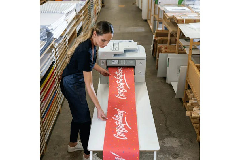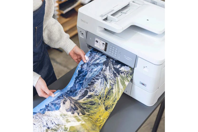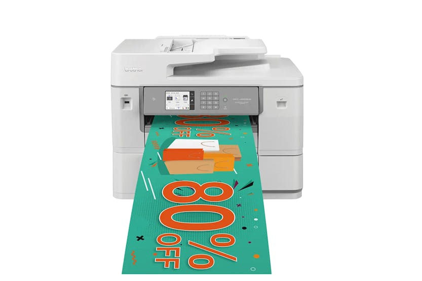 Description Compact and multifunctional, large format printer. Designed for businesses needing a flexible printer that can print, copy, scan and fax with the added benefit of printing on long format roll paper. The mfc-j6959dw provides premium quality a3 and a4 printing and scanning with the ability to print on roll paper. Easily print banners, posters, panoramic photos and promotional signage, then cut to the required length with the automatic cutter. General Display size:8.8cm Max paper size:A3 Connectivity Wired network, wireless Local interface: hi-speed usb 2.0, usb 2.0 host (front) Wired network interface: 10base-t/100base-tx Wirelesss network interface: 2.4ghz ieee 802.11 b/g/n & 5ghz ieee 802.11a/n Operating systems: ChromeOS Linux: cups and lpd/lpr (x86, x64) Macintosh: mac os x 10.15.X or higher Windows: server 2008, server 2008r2, server 2012, server 2012r2, server 2016, server 2019, windows 7, windows 8, windows 10, windows 11 Software supplied - mac: brother iprint&scan Software supplied - windows: brother iprint&scan, bradmin professional, mass deployment tool, status monitor Printing A4 2-sided print speed: 21 A4 standard print speed: 30ipm Emulations: pcl6, br-script3, pdf version 1.7, xps version 1.0 First print out time: 4.6 seconds Recommended monthly volume: 3500 pages Security Features Active directory ldap authentication Automatic intrusion detection Digitally-signed firmware Ip filter Nfc Port based network access control Restrict network protocols Secure function lock v3 Secure print Secure printing with ssl Setting lock Solutions Bsi Supported:brother web connect, brother apps What's in the Box: Power supply cord Product Features: Fast wired ethernet connectivity 2.4/5ghz wireless with wi-fi direct and wi-fi protected setup (wps) Business security features as standard Next generation advanced printhead technology Built to last with robust and durable design Fast automatic 2-sided scan a4 up to 36ipm mono and colour Optional high yield inks printing up to 6000 pages black and 5000 pages colour Up to 30ipm print speed (based on iso/iec 24734) Automatic 2-sided a3 print, scan, copy and fax Roll paper or 500 a4 sheet lower tray Automatically cut roll paper to any length Borderless printing