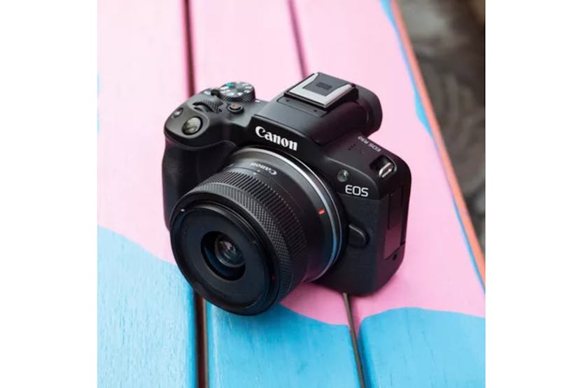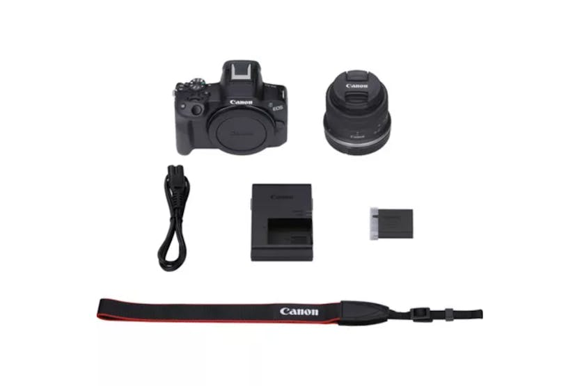 Capture your best moments with the Canon EOS R50 RF-S 18-45mm Lens Mirrorless Camera in black. Featuring a 24.2 megapixel APS-C sized sensor and Dual Pixel CMOS Auto Focus II, this camera delivers high-quality stills and 4K 30p movies with ease. The compact design, Vari-Angle touchscreen, and electronic viewfinder make it ideal for on-the-go creators who want to bring their vision to life in stunning detail. Experience fast and accurate focusing, seamless connectivity with smart devices, and the ability to shoot in UHD 4K with the Canon EOS R50. Whether you're a beginner or a seasoned pro, this camera is designed to help you capture your creative breakthroughs and share them effortlessly with the world.