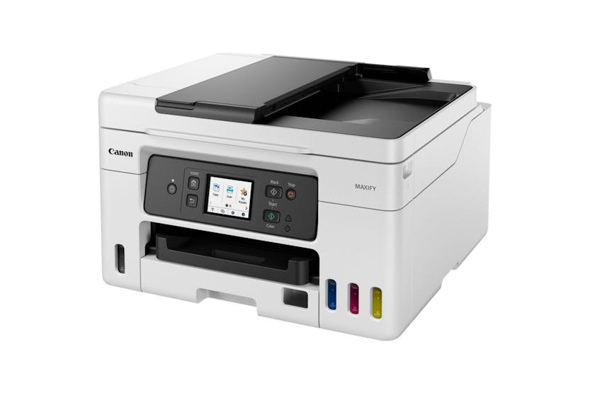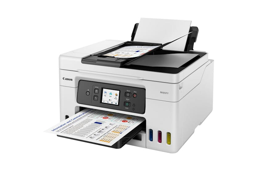 Description Online Only Discover the Power of Effective Printing Meet the Canon MAXIFY GX4050, a 4-in-1 MegaTank printer that combines style, practicality, and a formidable range of features, making it a game-changing addition to your home office setup. This multifunction device is capable of printing, scanning, copying, and faxing – all powered through by cost-effective, refillable ink tanks. Ideal for home office or small business use, the GX4050 will streamline your productivity whilst maintaining an impressively low total cost of ownership. Superior print speeds, compatibility with multiple media types, an automatic document feeder, and handy self-maintenance features provide unrivalled efficiency without compromising print quality. Value for Money with Every Print The key focus of the Canon MAXIFY GX4050 printer is on delivering first-rate value. Its large and affordable refillable tanks significantly decrease running costs, making this printer an economical powerhouse. Add the beneficial Economy mode to get 1.5 times more pages from the same amount of ink. Effortlessly print up to 14,000 pages without needing to refill, making the GX4050 a stellar addition to high-demand home offices or small businesses. Diverse and Convenient Capture the versatility of the GX4050 as it allows printing on a wide variety of materials—flyers, envelopes, high resolution paper, photo paper, and even banners can be processed with ease. A real go-getter, the printer’s 100-sheet rear feeder and 250-sheet front cassette are paired with a 35-sheet ADF, making printing documents a breeze while reducing downtime. Specifications: Colour multifunction printer - print, copy, scan, and fax Refillable ink system for low cost of ownership Print speed: up to 18 ipm mono and 13 ipm colour Compatible with Windows, Mac OS, and Chrome OS Equipped with User-replaceable maintenance cartridge Connectivity: Wi-Fi, Ethernet Automatic Duplex printing Includes multi-purpose trays totaling 350-sheet input capacity This Is What You Get Beyond the stylish, compact, and easy-to-use Canon MAXIFY GX4050 printer, the package also includes cartridges. You get the black cartridge sufficient to print up to 6000 pages and CMY cartridges to print up to 14000 pages, giving tons of potential printing power straight out of the box. Additionally, the included AC power cables provide all the necessary infrastructure to plug in and start printing high-quality documents right away. Smart Office Style Canon MAXIFY GX4050 4-in-1 printer provides a stress-free home office experiences, allowing you to focus on what truly matters—growing your business. Canon MAXIFY GX4050 Printer Why Buy Play Button Play Button Play Button