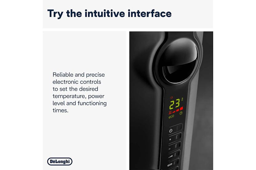 Experience long-lasting heat with the DeLonghi 2KW Oil Filled Radiator in Grey. Featuring Real Energy Technology for efficient heating, this radiator ensures quick and cost-effective warmth for your home. The digital interface allows for easy temperature control and scheduling, while the pre-assembled folding castors make it simple to move from room to room. With a max heating power of 2000W and safety features like a child lock and safety thermostat, this radiator is a reliable and convenient choice for keeping your space cozy.