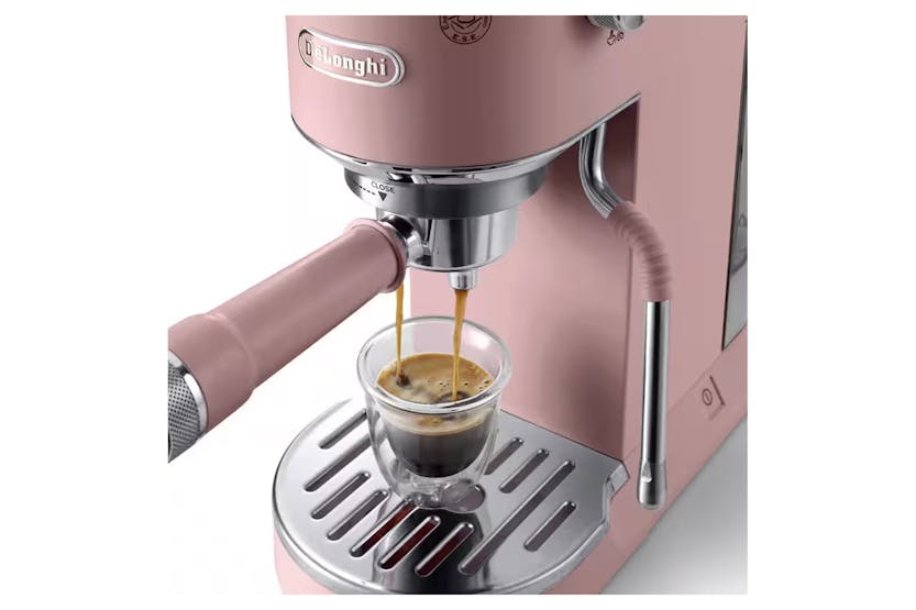Elevate your coffee experience with the Delonghi Dedica Duo Coffee Machine in Pink. This compact yet powerful espresso machine allows you to create pro-style espressos, froth milk like a barista, and brew refreshing Cold Brew in just five minutes. With its intuitive digital display, customizable drink options, and sleek Italian design, you can enjoy delicious coffee crafted to your exact preferences every time. Upgrade your coffee game and become a Proper Coffee Person with the Dedica Duo. Experience the luxury of high-quality coffee at home with the Delonghi Dedica Duo Coffee Machine. From perfectly textured microfoam to customizable drink options, this espresso machine offers a barista-like experience in a compact design. With its ability to brew Cold Brew in minutes and its elegant Italian style, the Dedica Duo is the perfect addition to any coffee lover's kitchen.