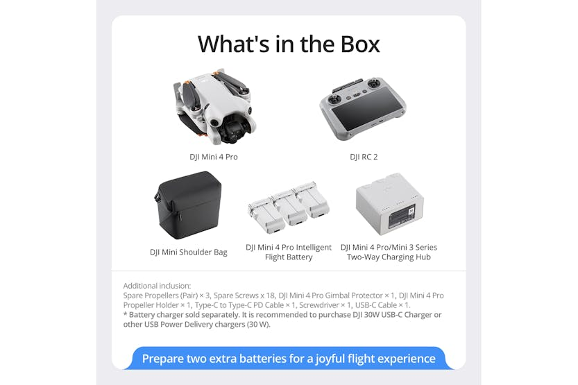 The DJI Mini 4 Pro Fly More Combo RC 2 with Remote Screen Controller offers unparalleled portability and performance for aerial photography enthusiasts. Weighing under 249g, it boasts a 34-minute battery life, 4K/60fps HDR True Vertical Shooting, and advanced obstacle avoidance technology, making it the perfect tool for capturing stunning visuals with ease and precision. With features like ActiveTrack 360° and stable video transmission up to 20 km, this drone is a game-changer for both beginners and experienced pilots alike. In the box, you'll find everything you need to take your aerial photography to the next level, including the DJI RC 2 Remote Controller, three Intelligent Flight Batteries, a Two-Way Charging Hub, a Shoulder Bag for easy transport, and more. Elevate your creativity and capture breathtaking footage with the DJI Mini 4 Pro Fly More Combo RC 2.