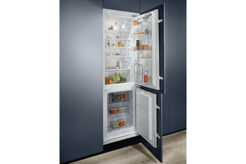 Upgrade your kitchen with the Electrolux Integrated Fridge Freezer | LNT6NE18S. The innovative TwinTech No Frost technology keeps food up to 60% juicier and more hydrated than traditional fridges, while the FastFreeze system preserves the texture and quality of fresh foods. With a ten-year warranty on the compressor and precise internal electronic control for optimal storage conditions, this fridge freezer offers both peace of mind and convenience. Plus, the premium LED lighting provides excellent visibility while consuming minimal energy. Don't miss out on this advanced and efficient appliance for your home. Take advantage of the Harvey Norman promotion and get 10% back in gift cards when you spend 500 or more on Large Appliances, including the Electrolux Integrated Fridge Freezer | LNT6NE18S. Upgrade your kitchen with a top-of-the-line appliance that not only keeps your food fresher for longer but also offers convenient features like adjustable temperature control, multiple door shelves, and a visual and acoustic high temperature alarm. Invest in quality, durability, and efficiency with this Electrolux fridge freezer, backed by advanced technology and a comprehensive warranty for your peace of mind.