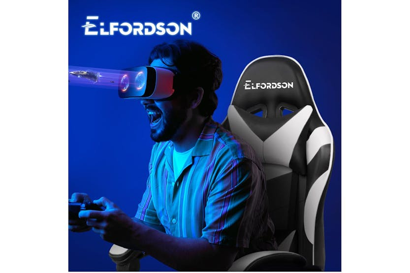 Description Online Only - Free Delivery Check out the video: Adjustable Cushions 150° Recliner Premium Materials Whole-piece Foam Dimension Lumbar Massage Gaming Chair Featuring innovative 2-point massage on lumbar support, Eryx series provides precise muscle relaxation on your lumbar (or lower back). Definitely designed for professionals and game lovers who spend extended periods at desks. (Massaging vibration simply powered by the USB charge). Enhanced Comfort High-density foam padding on back and seat fully contours your body shape, built for all-day comfort. Adjustable and removable neck pillow, lumbar cushion adapts your sitting posture. 80cm high backrest ensures ultimate ease, even for those with a larger build. Built to Last A stylish chrome base with TUV-certified casters, Intertek-approved PU leather upholstered in generous foam paddings, SGS-approved Gas-Lift system, delivering absolute five-star luxury. Dynamic Ergonomics With backrest recliner between 90° and 150°, retractable padded footrest, 10cm seat height adjustments, and 360° swivel castors, this chair fits comfortably under most gaming desks or workstations. Product Features Seat material type: Faux leather Frame material: Engineered wood Upholstered leather Swivel Seat lock 2-Point lumbar massage Head support Read More