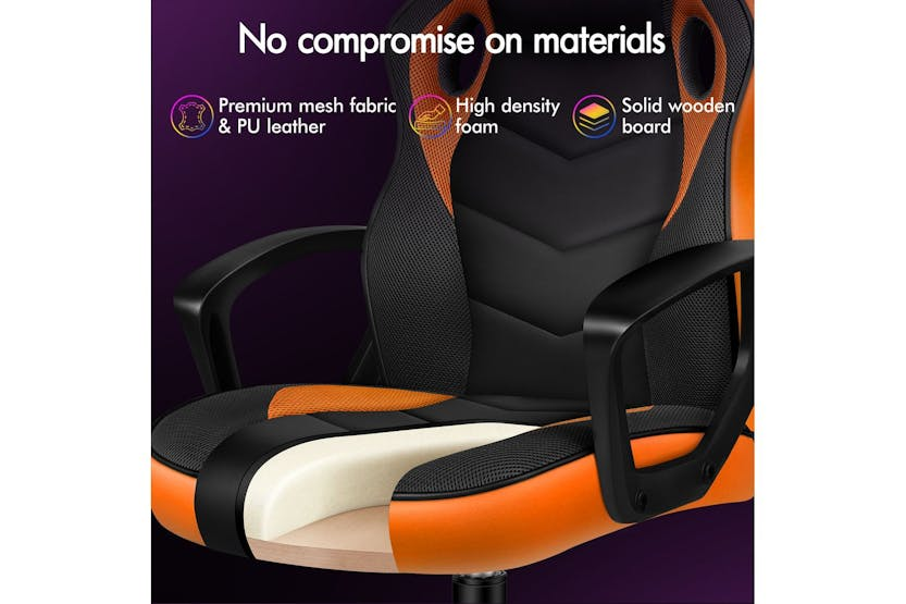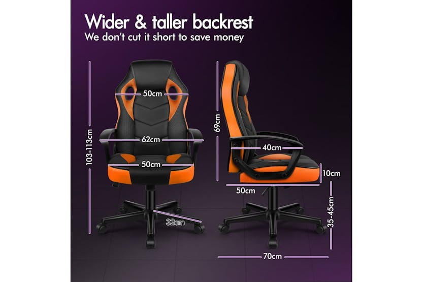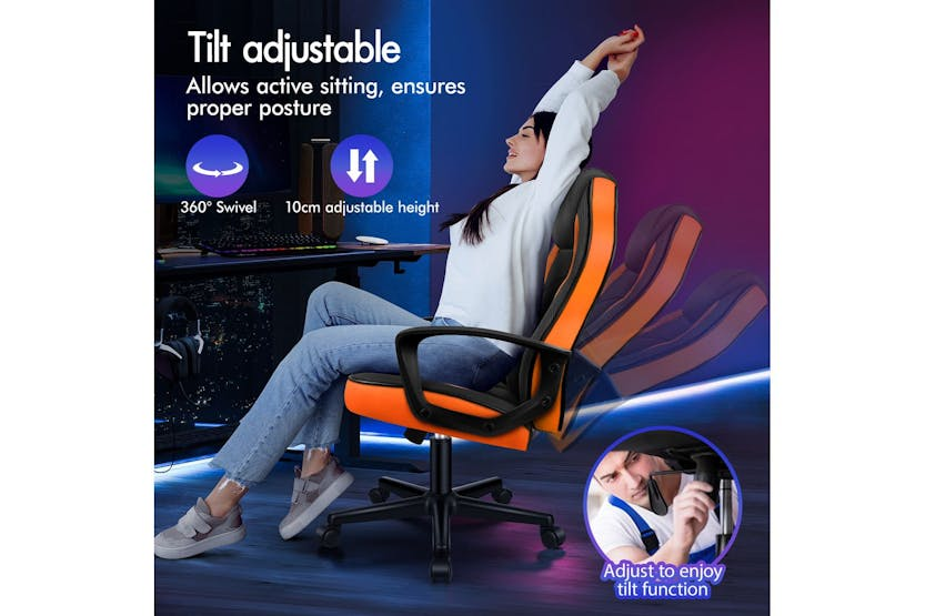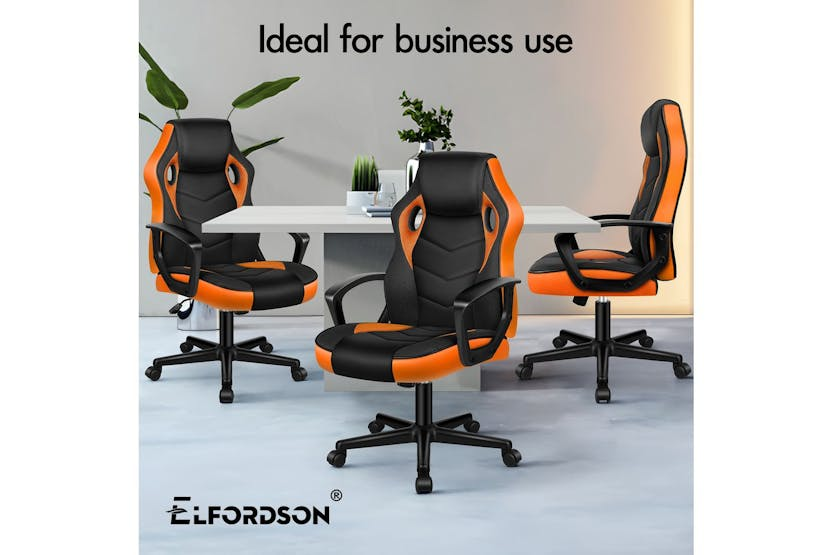 Upgrade your gaming or office setup with the Elfordson Gaming Chair in vibrant orange. Made with a blend of PU leather and breathable mesh, this chair offers ultimate comfort and support with a stylish design. Featuring an ergonomic S-curve backrest, adjustable seat height, and 360° swivel function, the Elfordson chair is perfect for gamers, home officers, and professionals seeking durability, luxury, and top-tier ergonomics. Elevate your workspace with this TÜV-certified, high-quality chair that can bear up to 180kg in weight. Free delivery available for online orders only.