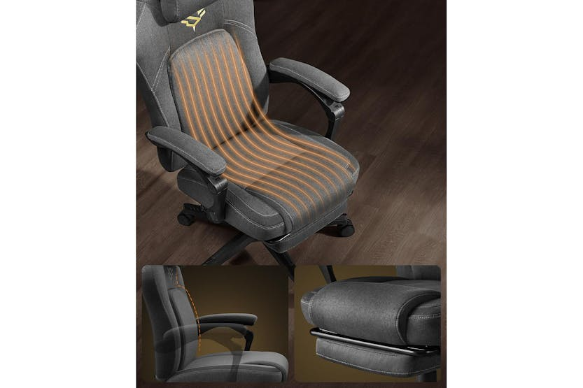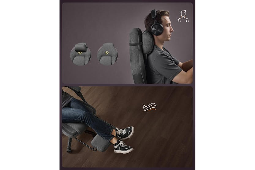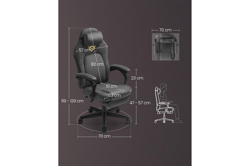 Description ONLINE ONLY Gaming Chair | Office Chair | Cotton-Linen Surface | Adjustable Level up your home office or gaming setup with the SONGMICS HOME Gaming Chair, designed for Irish gamers and professionals who demand comfort, style, and performance. This ergonomic office chair blends a breathable cotton-linen surface with bold, eye-catching accents, making it the perfect centrepiece for any gaming room or workspace. Whether you are battling through an intense online match or powering through a workday, this chair ensures you stay comfortable and supported for hours on end. Experience next-level comfort with a chair that adapts to your body. The SONGMICS HOME Gaming Chair features a contoured design that hugs your curves, complete with integrated lumbar support, a plush cushion, and a well-padded headrest. The connected armrests provide extra stability, while the adjustable seat height and reclining backrest (90°-135°) let you find your ideal posture. Take a break and stretch out with the extendable footrest, perfect for relaxing between games or meetings. Stay cool and focused, even during marathon sessions. The cotton-linen fabric is not only soft to the touch but also highly breathable, preventing heat build-up and keeping you comfortable all day long. Glide effortlessly across your floor with whisper-quiet PU wheels, designed to move smoothly and silently, so you can stay in the zone without distractions. Built to last, the SONGMICS HOME Gaming Chair has passed rigorous BV strength and durability tests, meeting the EN1335 standard. The robust star base withstood a static pressure of 1136 kg for one minute without breaking, giving you peace of mind and confidence in your investment. This chair is the ideal choice for anyone in Ireland seeking a reliable, stylish, and ergonomic solution for gaming or office use. Key Features: Ergonomic design with lumbar support and padded headrest Breathable cotton-linen surface for all-day comfort Reclining backrest (90°-135°) and adjustable seat height (10 cm range) Extendable footrest for added relaxation Connected armrests for enhanced stability Whisper-quiet PU wheels for smooth, silent movement Tested to EN1335 standard for strength and durability Specifications: Material: Cotton-linen fabric, PU wheels, sturdy star base Backrest Recline: 90°-135° Seat Height Adjustment: 10 cm Static Pressure Test: 1136 kg for 1 minute Meets EN1335 standard (Report No.: (6624) 075-1015) Included Items: SONGMICS HOME Gaming Chair Assembly instructions All necessary assembly hardware Transform your gaming or work experience with the SONGMICS HOME Gaming Chair – the ultimate blend of comfort, durability, and style for Irish homes and offices.