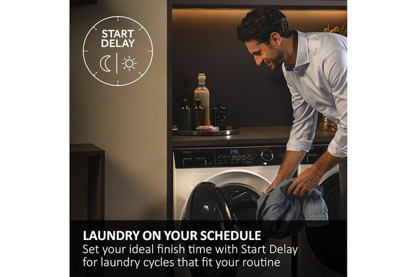 Experience the ultimate in efficient and innovative tumble drying with the Haier X Series 11 9kg Heat Pump Tumble Dryer. Featuring Ultra Reverse Drum technology to prevent tangling, Flexy Air for customizable airflow, and unique features like the Unique Rack and Pillow Drum for delicate items, this dryer offers a superior drying experience. Save time and energy with the Favorite function and easily navigate settings with the intuitive TFT screen. Upgrade your laundry routine with this high-performance appliance. Plus, with a remarkable A+++ -10% energy efficiency rating, the Haier X Series 11 not only provides exceptional drying results but also helps minimize environmental impact. Say goodbye to re-drying and tangled clothes, and hello to perfectly dry and cared-for garments every time.