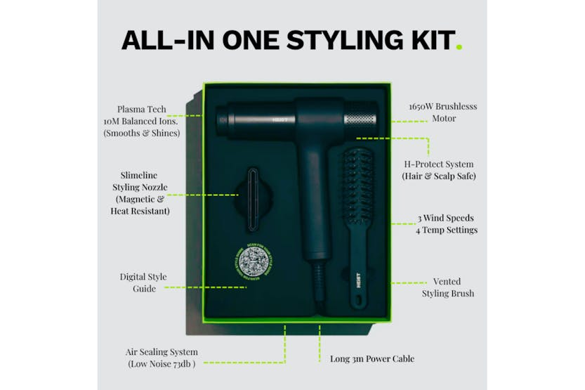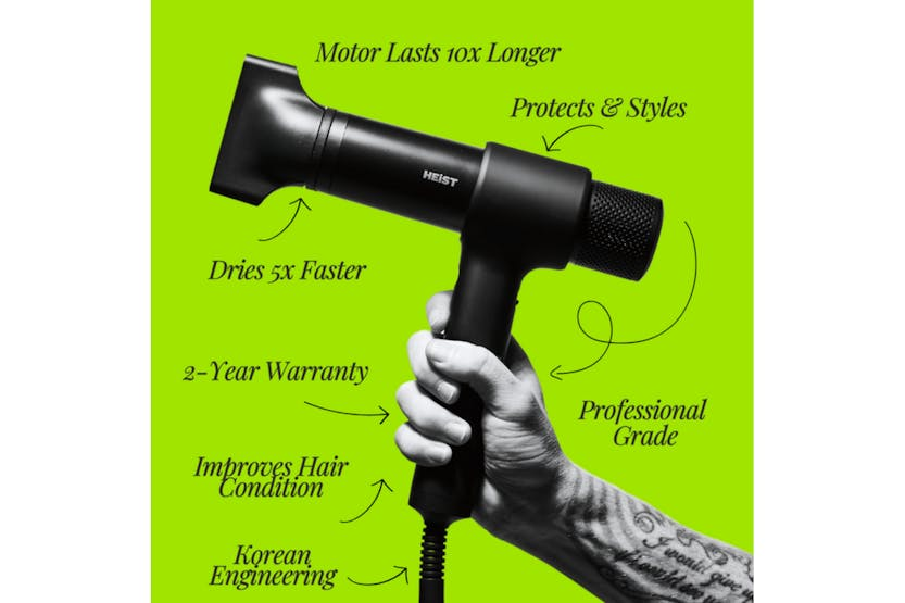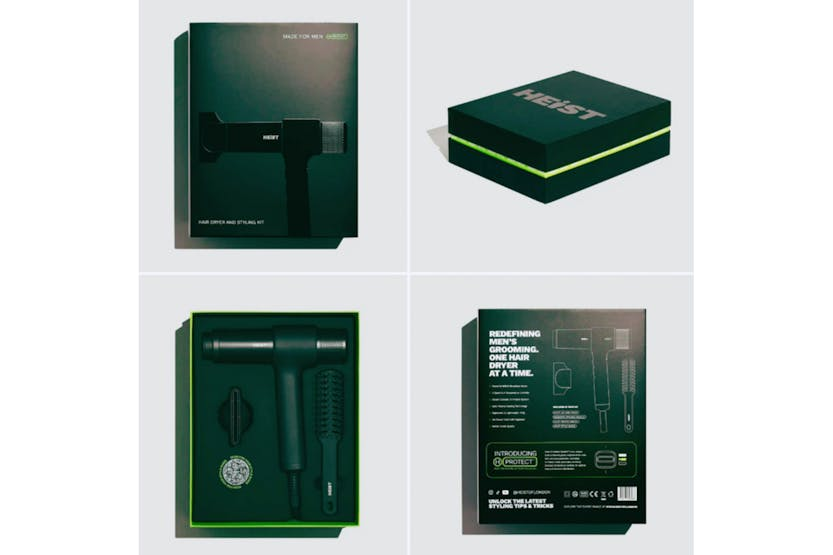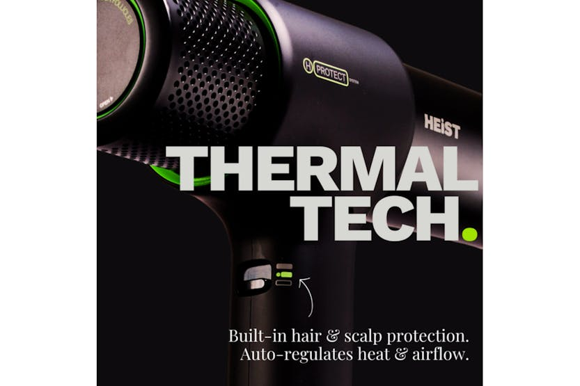Description Flat hair? Thinning? Limp style? Fix It with Heist. Protect your hair, shield your scalp and power up your style. The Heist 3.0 isn’t just a dryer, it’s how you get that barber-fresh feeling from home. Built tough. Engineered for precision. Heist delivers great hair today and protects the future of your follicles. Made for All Hair Types Crafted in collaboration with top barbers, we’ve created the only dryer designed for men's hair types and styles. Heist 3.0 is a self-styling tool that protects and conditions hair - designed for daily use from home, the gym, or on the go. Hair & Scalp Guard The H-protect system as your thermal shield. Enhances Hair Condition Plasma coating technology ensures a smooth finish. Rapid Drying Under 60 Seconds Turbo airflow at 100,000 RPM dries 5x faster than standard dryers. Lightweight & Ergonomic Design Made to use at home, gym or barbershop. Fuller and Thicker Hair, Everyday. Before After What Makes Heist the Choice for Men Protect: H-protect System Smart controls with the h+ styling system that automatically adjusts to optimal heat settings, ensuring hair protection and promoting scalp health. Shield: Plasma Coating Tech Plasma coating conditions and hydrates hair by emitting 10 million positively and negatively charged ions. Style:powerful and Quiet Brushless Motor Volume maximisation that enhances hair thickness. Powerful airflow, low noise and low vibration. The H-protect System Your built-in thermal shield. The H-Protect System automatically adjusts heat and airflow, maintaining optimal temperature and windspeed for safe styling. It’s heat protection in cruise control. From Messy to Mastered in Minutes Proven to Restore and Strengthen Damaged Hair Clinical trials show damaged hair began to improve in 50 minutes, improved by 55.2% in 90 minutes with heist's ionic plasma coating technology. Product Features Thickens & enhances hair condition | plasma coating tech Protects hair & scalp | h-protect system Dries & styles fast | powerful 100,000 rpm brushless motor (220-240v~, 50/60hz) Shapes & styles | 3 airflow speeds & 4 temp control Pro-grade | 3m power cord with organiser (UK type G plug) Heat-resistant magnetic styling nozzle Heist vented brush and digital style guide