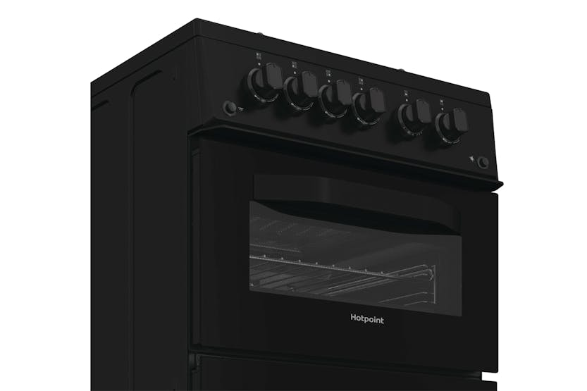 Description This Hotpoint freestanding 50x60 double cooker features: 4 gas burners. Black colour. Gas power supply. 50cm width. Catalytic Liners Uses your oven’s heat to keep itself clean and save you time. Catalytic liners work using the heat of the oven to break down grease and fat, so you can spend more time cooking and less time cleaning. Fast Pre-Heat All the heating elements switch on till the oven reaches the cooking temperature of the cycle you selected, cutting the preheat time. Product Features: Number of gas burners : 4 Cavity type : Embossed Power of 1st heating element (W) : 2000 Power of 2nd heating element (W) : 2000 Power of 3rd heating element(W) : 2900 Power of 4th heating element (W) : 1000