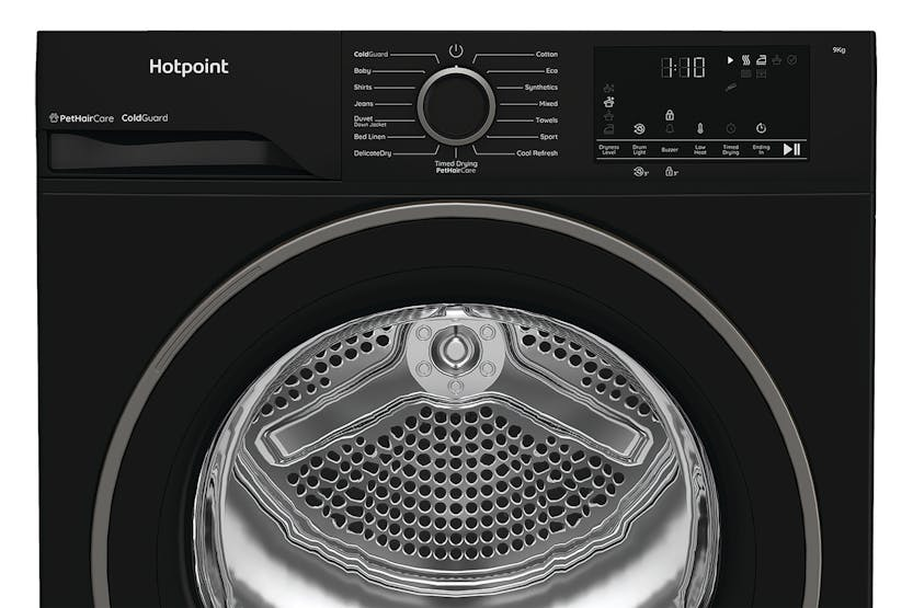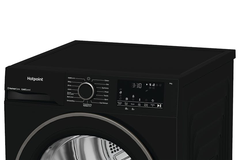 Introducing the Hotpoint 9kg Freestanding Heat Pump Tumble Dryer, designed for efficiency and convenience. With automatic programmes, a moisture monitoring system, and handy indicators for a blocked filter and full tank, this dryer takes the guesswork out of laundry care. The anti-crease function ensures clothes come out looking fresh, while the UK plug type and 24-hour start delay options offer added flexibility for your busy schedule. Upgrade your laundry routine with the Hotpoint HHDD90BBIRE. Experience the ultimate in drying performance with the Hotpoint 9kg Freestanding Heat Pump Tumble Dryer. This sleek and reliable appliance offers a range of features to simplify your laundry routine, including automatic programmes and a start delay option of up to 24 hours. The moisture monitoring system ensures optimal drying results, while the anti-crease function keeps clothes looking their best. Trust in the Hotpoint HHDD90BBIRE to deliver efficiency and convenience with every load.