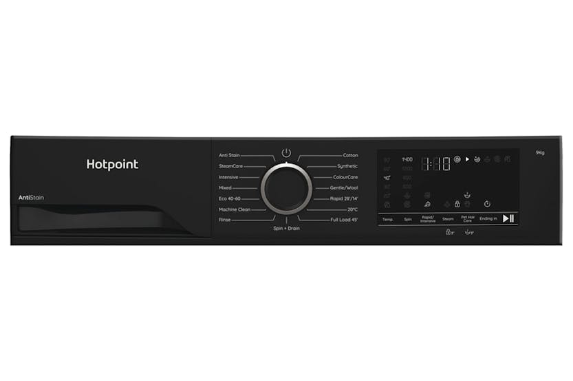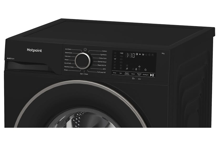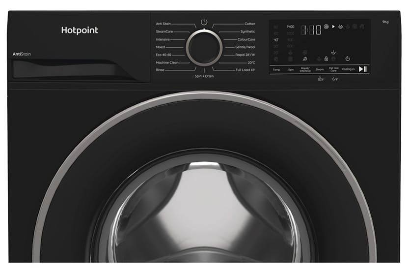 Description This Hotpoint ColourCare Washing Machine has a spacious 9kg capacity and an outstanding A-10% energy rating. ColourCare technology gently washes at lower temperatures, helping to protect your clothes and keep colours vibrant for longer. Thanks to an added prewash and extra rinse, the PetHairCare option gently removes pet hair while protecting your fabrics, leaving your laundry fresh, clean, and hair-free – a must-have for any pet-loving home. A Energy Class Unparalleled energy efficieny. Impeccable results and maximum energy savings are guaranteed thanks to A energy class. Anti Stain Save time and achieve great wash results, with Hotpoint Anti Stain programme, removing those common everyday stains with no need to pre-treat. *Obtained on Anti Stain programme 40°C (tested on Cotton) tested by external institute SSOG (Italy) on more than 100 types of stains. Fabric Care Fabric Care technology is twice as gentle* on your laundry, helping your favourite clothes last even longer. The unique drum design ensures even detergent distribution and reduces friction, minimising fabric wear, so your clothes stay looking and feeling their best, wash after wash. *Based on internal testing of the Cotton 40° programme, comparing the new Fabric Care model to the previous model without Fabric Care technology. Colourcare ColourCare gently washes at lower temperatures, helping to protect your clothes and keep colours vibrant for longer. Steamcare SteamCare is a dedicated eco-cycle to freshen clothes that aren't yet ready for a full wash, saving water and detergent. In just 17 minutes, steam penetrates deep into fabrics to freshen them, reducing creases by up to 58%* and cutting ironing time by 28%*, so you can be ready to go in no time. *Tested by 3rd party laboratories. Steam Technology Steam Hygiene adds an extra period of steam at the end of a full wash cycle for a deep intensive clean. Steam Refresh Steam Refresh is a dedicated cycle to freshen clothes avoiding washing, saving time, energy and water, removing all unpleasant smells in just 20 min. Steam penetrates deep into fabrics making them slightly damp, reducing a huge part of creases and making garments easier to iron. Pethaircare Thanks to an added prewash and extra rinse, the PetHairCare option gently removes pet hair while protecting your fabrics, leaving your laundry fresh, clean, and hair-free – a must-have for any pet-loving home. Rapid Option With the Rapid option you can reduce the cycle time, deciding to shorten the washing time before starting the program. Thanks to the Rapid option, Hotpoint can guarantee perfect washing performance, reducing the washing time up to 50%**. ** the % will vary according to load & program selected. Inverter Motor This Hotpoint Washing machine's Inverter Motor is designed to ensure a long lasting performance and to improve end results. 1400 Rpm Unbelievably fast. It works with a spin speed of 1400 revolutions per minute. Programmes Synthetics Rapid 30' Delicates Rinse + Spin Spin + Drain Steam refresh Cotton Mix Eco 40-60 20°C Product Features: Length of electrical supply cord (cm)170 Automatic programmes Display type : Big digit Airborne acoustical noise emissions : 75