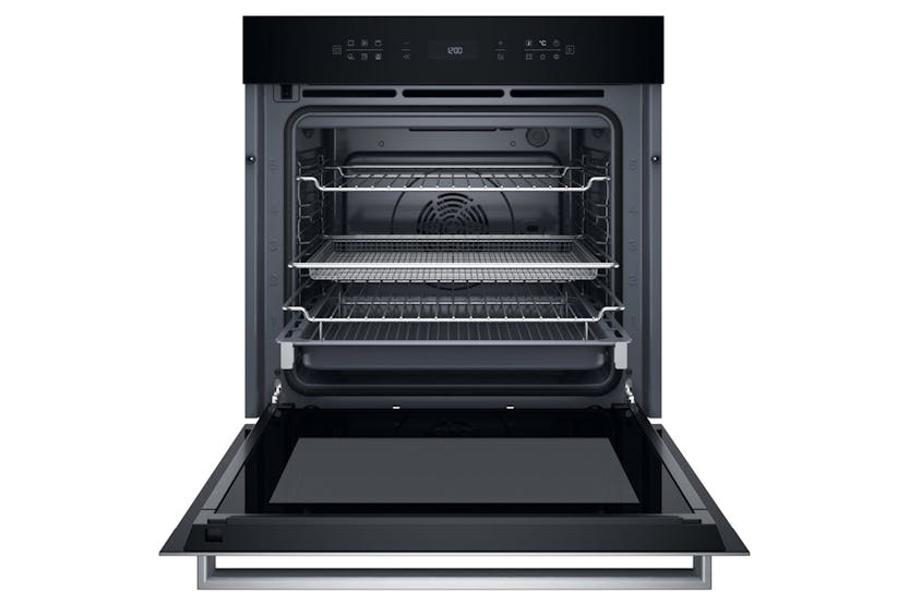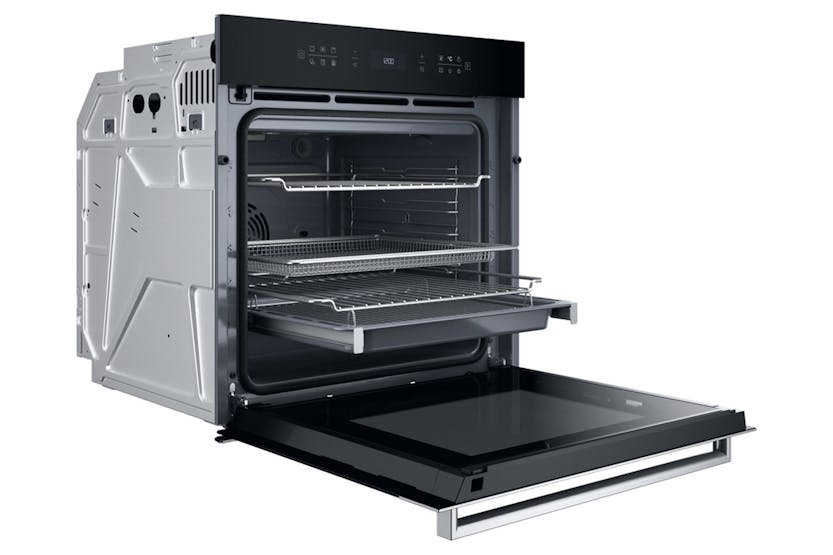 Description This Hotpoint built in Oven features: advanced electric technology allowing you to cook dishes saving energy. Oven door with soft-close design, for increased ease of use. Halogen lamp allowing a more energy-efficient performance. MultiFlow Multiflow technology distributes constant heat to every shelf, and monitors the temperature so precisely, that you'll achieve consistently great bakes no matter where you place your food in the oven. AirFry This function allows you to cook crunchier* French fries, chicken nuggets and more, with up to 50% less fat.** Heating elements are precisely organized to properly distribute heating, while the powerful convection fan circulates hot air homogeneously throughout the oven cavity. Best expected cooking results can be achieved by using the dedicated Air Fry tray. This special accessory guarantees optimum hot air circulation around the food, resulting in an evenly crunchy and crispy batch. The Air Fry tray capacity is sufficient to prepare a batch of french fries or chicken nuggets for the whole family. In addition, this accessory is dishwasher safe, so it can be easily cleaned without manual efforts. Pizza 310°C Our dedicated pizza function reaches a high temperature of 310°C, so you can achieve restaurant-style results in just 10 minutes*. *Based on a standard 12” pizza, excluding preheat time. DualClean With DualClean you have two cleaning options: Pyrolytic Clean for a deep clean, burning away any tough stains at high temperatures. Or Diamond Clean to tackle everyday residue using steam. Hydro Clean The natural power of steam for super clean results. A 35 minute self-cleaning steam programme loosens fat and food residue from the special coating on the sides of the oven, that can be simply wiped away after the cycle has ended. Pyrolytic Clean A special cycle safely locks the oven door and heats up to 470°C to burn off any fat and grease without having to use detergents. Simply dust away any residue once the cycle is complete. Rotisserie Cook tender, whole chicken and roast meats with ease, creating memorable meals for your family with this self-turning feature. MyMenu A selection of Pre-Set cooking preparations (up to 20) that can support you in achieving desired results. Select your preferred cooking method (eg. baked, roasted, grilled or steamed) or a specific food type based on your dish, and the oven automatically sets the ideal cooking type, temperature and time. Soft Closing The soft-closing device uses next-generation hinges to gently close the oven door and prevent it from slamming shut. Telescopic Guides An extendable shelf that is self-supporting so you can take dishes in and out, taste or stir, safe in the knowledge that the shelf won't tip. Each oven that shelf won't tip. Each oven that has a telescopic shelf also has a telescopic shelf also comes with a deep dish. XXL Capacity While maintaining the same external dimensions and occupying the same space of a 60 cm oven, Hotpoint ovens ensure greater versatility for exploiting the oven’s internal space thanks to its exceptional capacity: up to 73 lt., with the possibility to position the grids on 5 different levels. Touch Control Smooth control at your fingertips. Precision right at your fingertips with touch sensitive panels that give you total control over your oven – and they’re easy to clean, too. Electronic Temperature Control Our intelligent temperature sensors minimise temperature swings to within only +/- 2°C throughout the whole oven, so you get the best cooking results. Forced Air For cooking different foods that require the same cooking temperature on several shelves at the same time. This function can be used to cook different foods without odours being transferred from one food to another. XL Cavity With 52 litres of capacity, Hotpoint first compact oven-microwave with 3 cooking levels lets you cook more in less space, offering room for multiple dishes in a compact 45cm design.. Fast Preheat Fast Preheat uses all of the oven's heating elements to reach your desired cooking temperature in just 5 minutes, so there's less waiting around when you need to start cooking quickly. Product Features: Energy consumption conventional (kWh) : 0.64 Energy consumption forced air convection (kWh) : 0.87 Cavity material : Enamelled Plug type : UK