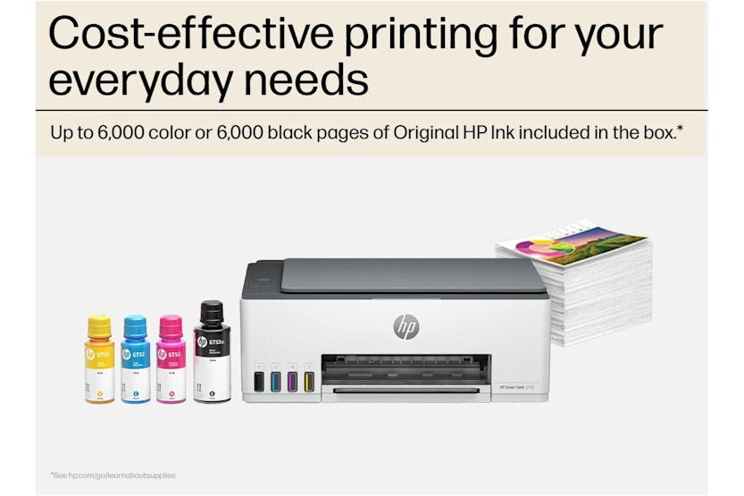 Upgrade to the HP Smart Tank Plus 5105 Wireless All-in-One Colour Printer for cost-efficient, high-quality printing. With up to 3 years of ink included, intuitive installation and usage, and reliable connectivity, this printer is perfect for home or small office use. Enjoy environmentally conscious printing, convenient ink and paper management, and spill-free refill system for a hassle-free experience. Trust in HP's reliable technology and get the quality results you expect at an affordable cost per page. Stay connected and productive with the HP Smart Tank Plus 5105. With features like self-healing Wi-Fi, HP Smart App for mobile printing and scanning, and HP Auto On/Auto Off technology, this printer is designed for convenience and efficiency. Easily monitor ink levels, enjoy fast connections, and produce high-quality prints and scans with ease. Upgrade to the HP Smart Tank Plus 5105 for everyday reliability and savings that exceed expectations.