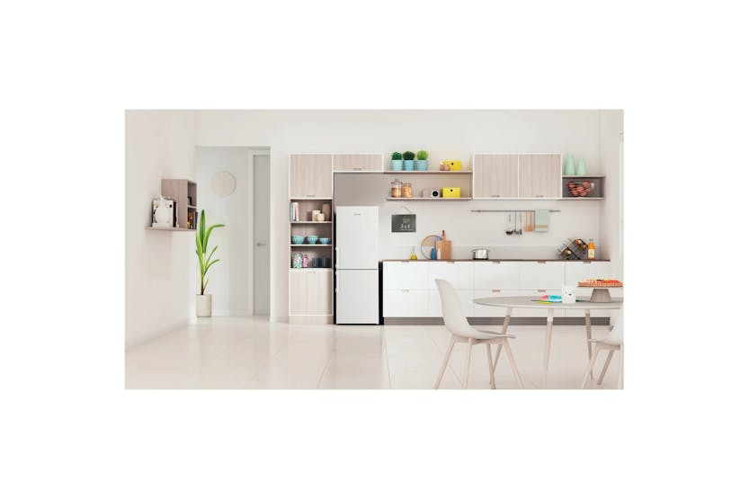 Upgrade your kitchen with the Indesit 55cm Freestanding Fridge Freezer IB55532WUK. This sleek white appliance offers a spacious interior with glass shelves for durability and safety. The LED lighting ensures easy visibility of all your items, while the Low Frost technology prevents ice buildup. With a reversible door and Open Space Freezer design, this fridge freezer is the perfect blend of convenience and functionality. Plus, enjoy energy savings with its E Energy Class rating and silent cooling operation. Take advantage of the Harvey Norman promotion and get 10% back in gift cards when you spend 500 or more on Large Appliances. Upgrade to the Indesit 55cm Freestanding Fridge Freezer IB55532WUK for a reliable, efficient, and stylish addition to your home.