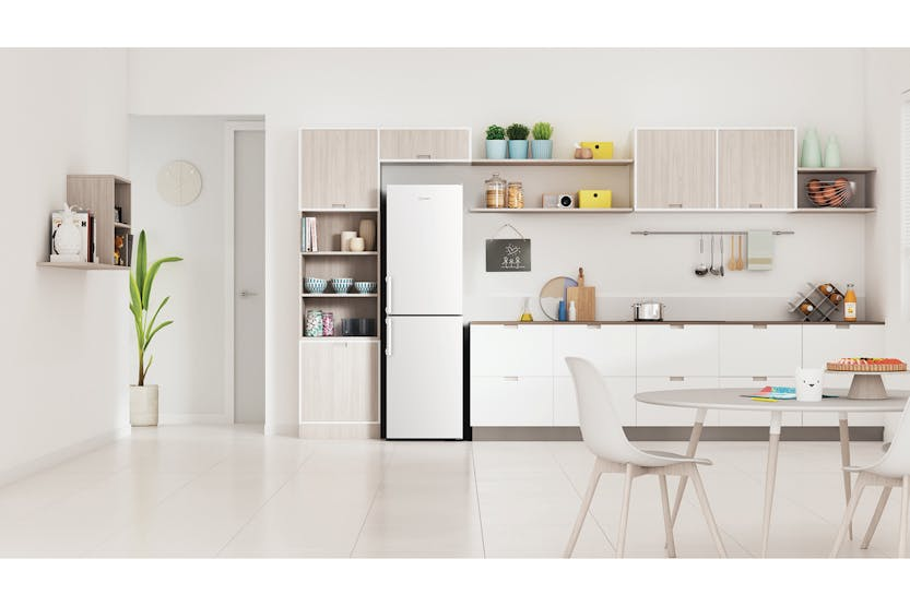 Upgrade your kitchen with the Indesit 55cm Freestanding Fridge Freezer IB55732WUK. This sleek white appliance offers ample storage space for your family's needs, with glass shelves and a convenient bottle balcony for safe storage. The LED lighting ensures easy visibility of all items, while the reversible door and compact 55cm width make it ideal for small spaces. The Open Space freezer design allows for easy storage of larger items, making this fridge freezer a practical and efficient addition to your home. Choose the Indesit IB55732WUK Fridge Freezer for optimal freshness and convenience in your kitchen. With features like Optimal Humidity technology to protect your food from drying out, this appliance is designed to keep your food fresh and organized. Plus, with a new energy label and clear instructions for use, you can trust that this fridge freezer will meet your needs while saving you time and energy.
