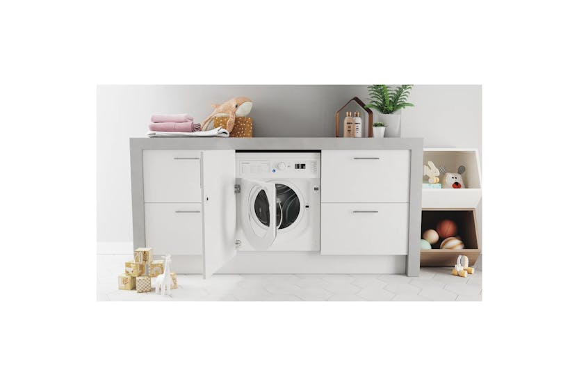 Upgrade your laundry experience with the Indesit 9kg Built-in Washing Machine | BIWMIL91485UK. Featuring a spacious 9.0kg capacity, B energy rating, and a fast 1400 RPM spin speed, this white washing machine offers convenience and efficiency. With innovative features like Push & Go technology, Synthetics 40 and Cotton 60 programmes, Delay option, Keylock, and Inverter Motor, you can enjoy superior cleaning performance and energy savings. Plus, the Autoclean Cycle and Wool Care programme ensure the longevity of your machine while providing gentle care for delicate fabrics. Invest in this Energy Class B washing machine for a reliable and cost-effective laundry solution. Take advantage of the Harvey Norman promotion and receive 10% back in Gift Cards when you spend 500 or more on Large Appliances, including the Indesit 9kg Built-in Washing Machine | BIWMIL91485UK. Upgrade your home with this high-quality washing machine and enjoy the convenience of advanced features and efficient performance.