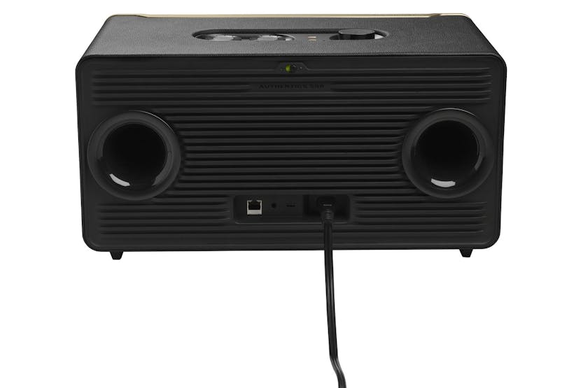 Experience the best of both worlds with the JBL Authentics 500 Wireless Speaker in Black. With 3D Dolby Atmos technology, this speaker delivers superb sound quality and performance, while its retro design adds a touch of classic style to any room. Enjoy seamless music streaming via built-in Wi-Fi, voice control with Google Assistant and Amazon Alexa, and multi-room playback for a truly immersive listening experience. Plus, the speaker is made in part with recycled materials, making it a sustainable choice for eco-conscious consumers. Elevate your audio experience with the JBL Authentics 500 Wireless Speaker. Immerse yourself in high-definition sound with the JBL Authentics 500 Wireless Speaker in Black. This speaker combines cutting-edge Dolby Atmos Music technology with a sleek retro design, creating a visually stunning and acoustically impressive audio experience. With features like seamless Bluetooth pairing, intuitive controls via the JBL One app, and automatic self-tuning, this speaker offers convenience and customization at your fingertips. Whether you're hosting a party or enjoying a quiet night in, the JBL Authentics 500 Wireless Speaker delivers superior sound quality and style that will elevate any listening experience.