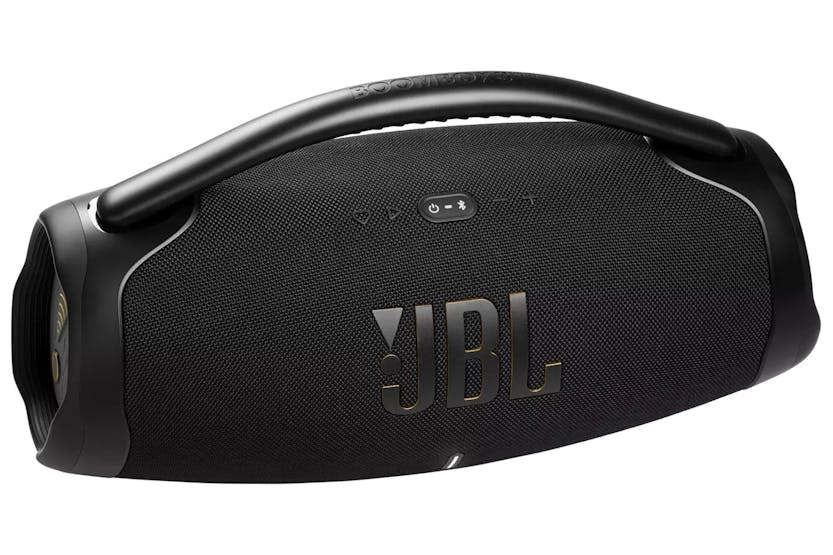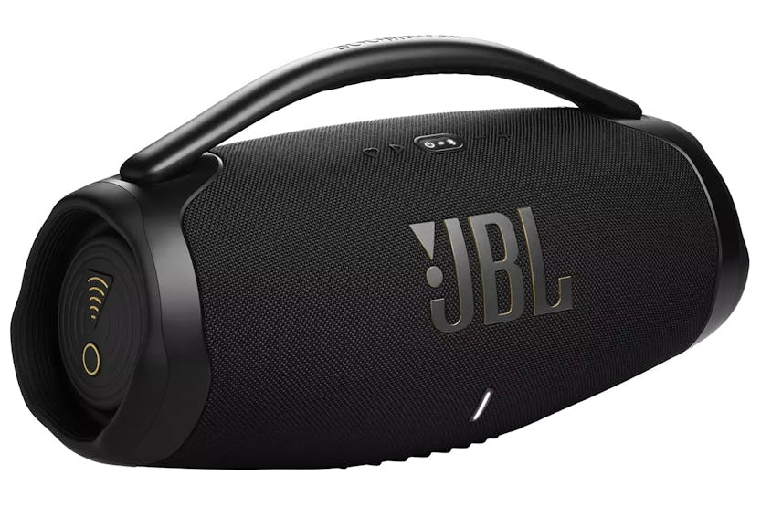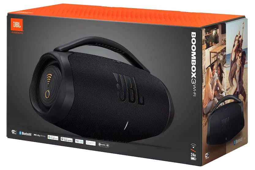 Experience massive JBL Original Pro Sound with the JBL Boombox 3 Wi-Fi Portable Bluetooth Speaker in Black. This speaker delivers deep bass, high-definition music streaming over Wi-Fi, and seamless Bluetooth connectivity for all-day adventures. With 24 hours of battery life, waterproof and dustproof design, and eco-friendly materials, you can enjoy your favorite audio content anywhere while making a positive impact on the environment. Immerse yourself in high-definition sound with 3D Dolby Atmos, while the built-in powerbank keeps your devices charged. The JBL One app allows for easy customization and control of your speaker, making it the perfect choice for indoor and outdoor listening. With the JBL Boombox 3 Wi-Fi, you can enjoy powerful sound, portability, and sustainability in one sleek package.