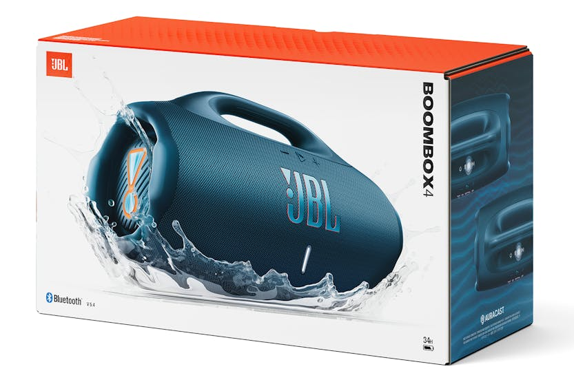 Experience unbeatable sound quality all day long with the JBL Boombox 4 Portable Bluetooth Speaker in Blue. Featuring JBL Pro Sound with AI Sound Boost, this speaker delivers powerful, deep bass and crystal-clear audio. With up to 34 hours of playtime, waterproof and dustproof design, and the ability to connect multiple speakers for a wider sound stage, the JBL Boombox 4 is the perfect companion for any party or outdoor adventure. Upgrade your sound experience with the JBL Boombox 4 Portable Bluetooth Speaker in Blue. With two bass boost settings to match your vibe, lossless audio playback, and a lightweight design, this speaker is perfect for on-the-go music lovers. Plus, with sustainable materials like recycled plastic and fabric, as well as FSC-certified paper packaging, you can enjoy your music while being environmentally conscious.