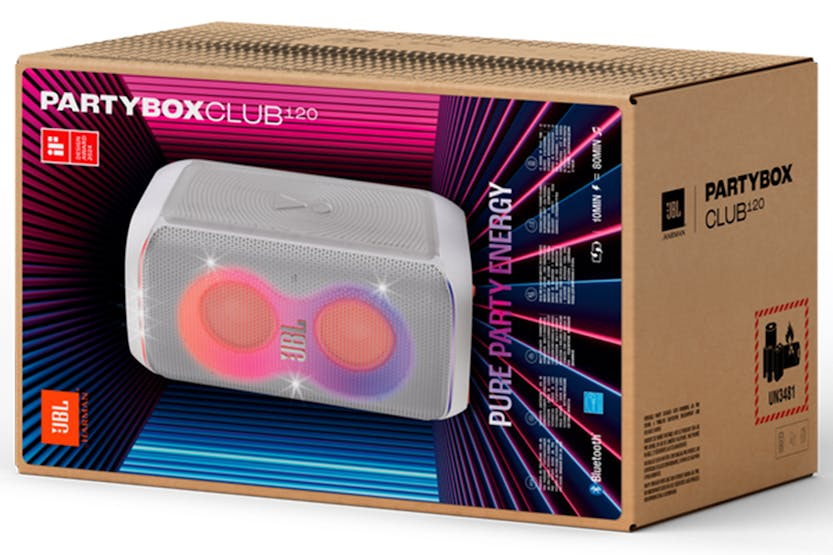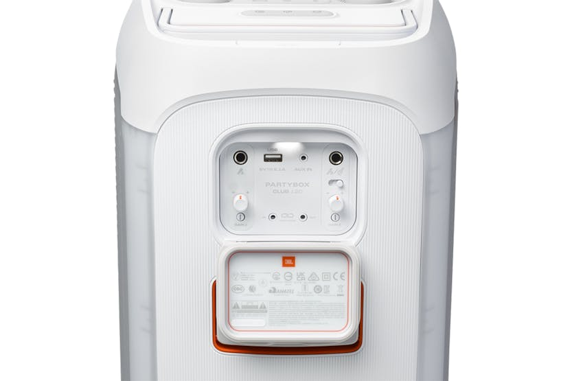 The JBL PartyBox Club 120 Bluetooth Speaker in White is the ultimate party companion, delivering powerful JBL Pro Sound with a futuristic lightshow that syncs to your beat. With up to 12 hours of playtime, splash-proof construction, dual mic and guitar inputs, and the ability to connect multiple speakers wirelessly, this speaker is perfect for any event or gathering. The JBL PartyBox app allows for easy customization of music, EQ settings, and light show effects, making it a must-have for those who want to take their party to the next level. Get ready to rock out with the JBL PartyBox Club 120 Bluetooth Speaker. With features like AI Sound Boost for maximum sound quality, dual mic and guitar inputs for live performances, and the ability to stereo pair two speakers for a wider soundstage, this speaker is perfect for music lovers and party-goers alike. The foldable handle and splash-proof design make it easy to take on the go, while the JBL PartyBox app allows for seamless control of music and lightshow effects. Don't miss out on the ultimate party experience with the JBL PartyBox Club 120.