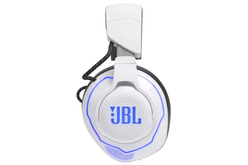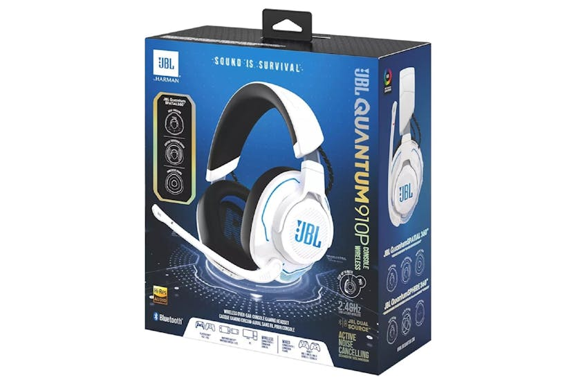 Experience unparalleled immersive sound with the JBL Quantum 910P Console Over-Ear Noise Cancelling Headphone in White. Designed for PlayStation, this wireless headset delivers hi-res audio with integrated head tracking for a competitive edge. With Active Noise Cancelling, low latency wireless connection, and up to 39 hours of battery life, you can stay fully engaged in your game without distractions. Game in comfort and style with this durable, versatile headset that is also compatible with Nintendo Switch, PC, and Xbox. Gain the competitive advantage with JBL Quantum Spatial 360 technology and Hi-Res Certified JBL Quantum Sound Signature, providing professional-level 3D audio positioning and crystal-clear sound for a truly immersive gaming experience. The flip-up-to-mute boom mic with echo and noise suppression ensures clear communication with your team, while the dual source feature allows you to stay connected to multiple sources simultaneously. Stay in the game longer with the ability to play and charge at the same time, making the JBL Quantum 910P Console Wireless headset the ultimate gaming accessory for any platform.