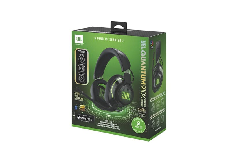 Immerse yourself in the ultimate gaming experience with the JBL Quantum 910X Over-Ear Noise Cancelling Headphone for Xbox. This wireless headset delivers precise, hi-res audio with integrated head tracking, allowing you to stay at the center of the action. With up to 37 hours of battery life, Active Noise Cancelling technology, and a comfortable design, this headset is ideal for Xbox gaming and compatible with PlayStation, Nintendo Switch, and PC. Gain a competitive advantage with JBL Quantum Spatial 360 and Hi-Res Certified JBL Quantum Sound Signature, while enjoying low latency wireless connectivity and the ability to play and charge at the same time. The JBL Quantum 910X also features a flip-up-to-mute boom mic with echo and noise suppression, allowing for clear communication with your team. Upgrade your gaming experience with the JBL Quantum 910X headset.