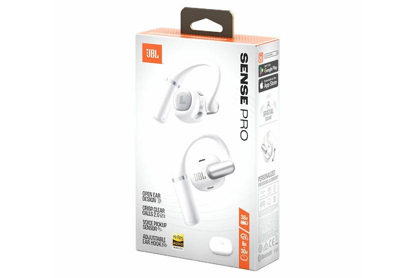 Description Check out the video: Check out the video: Check out the video: Jbl Opensound Technology & Spatial Sound JBL Sense Pro headphones rest comfortably on the curve of your ear, not in your ear canal, so you'll always hear the world around you. At the same time, the sound is directed straight into your ears, so no one can hear your music or calls, even if they're standing right beside you on the subway. Meanwhile, JBL Spatial Sound makes the audio feel like it's enveloping you with stereo content from any device. Hi-Res Audio Wireless with Adaptive Bass Boost Enjoy studio-quality Hi-Res Audio Wireless sound. LDAC transmits three times more data than Bluetooth audio, delivering high-performance 24-bit sound. And the adaptive bass boost algorithm adjusts the bass depending on how loud you're listening, so you'll always have precise, deep, rich, dynamic sound without distortion. 4-mic Crisp, Clear Calls 2.0 with AI-trained Algorithm With your JBL Sense Pro headphones, you can take calls anywhere. Featuring two beamforming mics per ear to accurately capture voice, the JBL Sense Pro also boast an AI-trained algorithm that reduces environmental noise. Plus, the Voice Pickup Sensor captures the bone vibration and works with the dual mics system to dramatically enhance voice clarity. The wind-resistant design of the JBL Sense Pro reduces air flow disturbance around the microphone pickup area to make your calls crystal clear even in the noisiest spaces. Adjustable Ear Hook for All-day Comfort That metal hinge doesn't just look luxe and cool. It's also adjustable, so you can ensure the best possible sound reproduction, no matter how your ears are shaped. The premium earhook is made of ultra-soft liquid silicone and features a slim memory internal wire, so it's both skin-friendly and incredibly comfortable. And the high-performance titanium alloy memory wire provides a stable and comfortable fit that won't fall out. Designed for All-day Wear Light, small, soft, and perfectly balanced, your JBL Sense Pro headphones are comfortable enough to wear all day. You'll have full situational awareness while you're wearing them, since they don't block your eardrums. Don't let little rain keep you from your walk. These IP54 water and dust resistant earbuds are built for the elements. Customizable Through The Jbl Headphones App Use the JBL Headphones App to tailor make your sound settings, activate Spatial Sound, personalize your sound with Personi-fi 3.0, customize the touch control features, personalize the call settings and much more. Up To 38 Hours Total Playtime, Plus Speed Charge and Wireless Charging Get up to 8 hours in the headphones and up to 30 more in the charging case before you need to plug them in again. And if that's not enough, 10 minutes charge gets you four more hours*. Or you can charge wirelessly! *Charging cable not included. Multi-point Connection Pair your JBL Sense Pro earbuds with up to two Bluetooth devices at the same time and then switch effortlessly from one to another. So if you're in the middle of a video on your tablet, you won't miss a call from your partner on your mobile phone. Dual Connect and Sync with Fast Pair Flip open the case and your earbuds pair with your Android device automatically. With Dual Connect, you can use both earbuds together or use either one individually. Sense The World Around You Sense the world around you with JBL Sense Pro headphones. Stay connected to your surroundings while immersing yourself in rich, vibrant Spatial Sound with JBL OpenSound technology with Air Conduction that is also Hi-Res Audio Wireless certified. The unique adjustable split ear hook features a soft and ergonomic design, enriched by metallic accents, that ensures a secure fit, personalized for your ears for all-day comfort. Four voice mics, JBL proprietary AI-trained algorithm for noise reduction and the Voice Pickup Sensor for voice clarity make sure your calls come through loud and clear even on a breezy day. And if a little drop comes along, JBL Sense Pro boasts an IP54 rating. With a battery that lasts up to 38 hours wirelessly rechargeable, the JBL Sense Pro got your back throughout the longest days. Use the JBL Headphones app to fine-tune a personalized listening profile and customize the intuitive touch controls so you can control your music and calls your way. Product Features: Driver size: 16.2 mm Number of microphones: 4 Bluetooth profiles: A2DP V1.3.2, AVRCP V1.6.3, HFP V1.9 Bluetooth frequency: 2.4 GHz – 2.4835 GHz Bluetooth transmitted modulation: π/4-DQPSK, 8DPSK Bluetooth transmitter power: < 10 dBm (EIRP) Bluetooth version: 6.0 Charging time: 2 hours from empty Maximum play time: 38 hours Speed Charging time: 4 hours Maximum talk time: 3.5 hours Built-in microphone Rechargable battery Touch control Speed charge