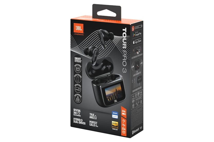Experience the ultimate in wireless audio with the JBL Tour Pro 3 True Wireless Earbuds in sleek black. Featuring a next-gen Smart Charging Case with a touchscreen for seamless control, dual-driver technology for legendary JBL Pro Sound, and True Adaptive Noise Cancelling 2.0 for a personalized listening experience, these earbuds offer up to 44 hours of music playback and fast pairing with Google and Microsoft devices. Upgrade your audio experience with the JBL Tour Pro 3. Immerse yourself in your music, movies, and games with JBL Spatial 360 sound and head tracking technology, while staying connected to the world around you with Smart Ambient and Smart Talk features. With the free JBL Headphones app, you can customize EQ settings, adjust noise cancellation, and personalize your earbuds' behavior. The JBL Tour Pro 3 True Wireless Earbuds are designed to elevate your listening experience to new heights.
