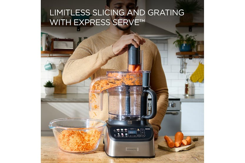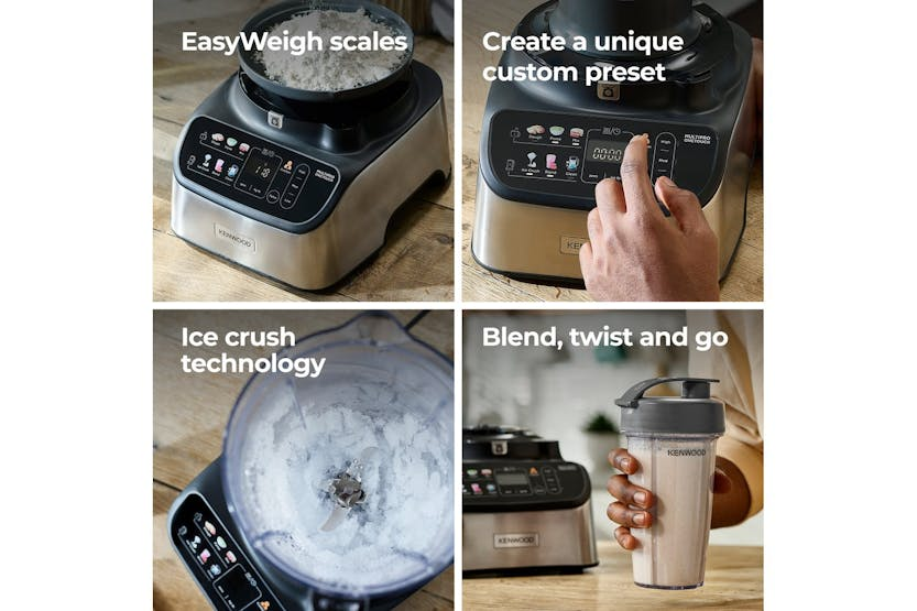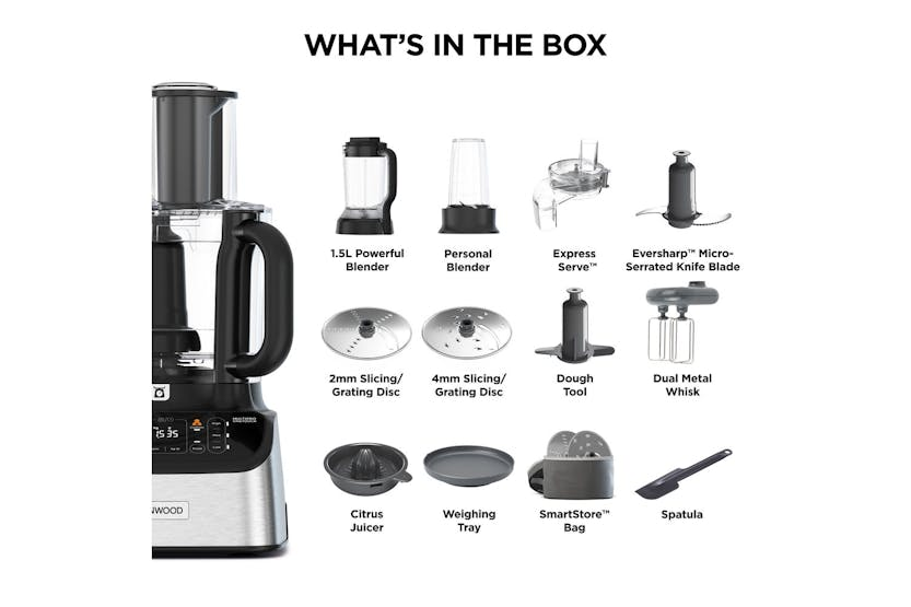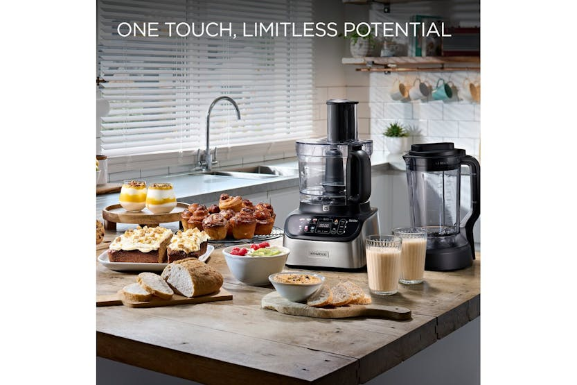 The Kenwood MultiPro OneTouch Food Processor & Blender | FDM73.850SS in Black/Brushed Stainless Steel offers a versatile 3-in-1 solution for all your food preparation needs. With automatic presets and a powerful 1000W motor, you can easily weigh, mix, knead, chop, blend, juice, and more with just one touch. The innovative OneTouch Ice Crush technology ensures perfectly crushed ice for your favorite cocktails in no time, while the built-in weighing scales and easy cleaning features make this a must-have kitchen appliance for any home cook. Included in the box are a range of accessories, from a dual metal whisk to a personal blender, making it easy to create your own preset programs or follow the six pre-installed ones. With the Kenwood MultiPro OneTouch Food Processor & Blender, you can save time, reduce mess, and enjoy professional-quality results in your own kitchen.