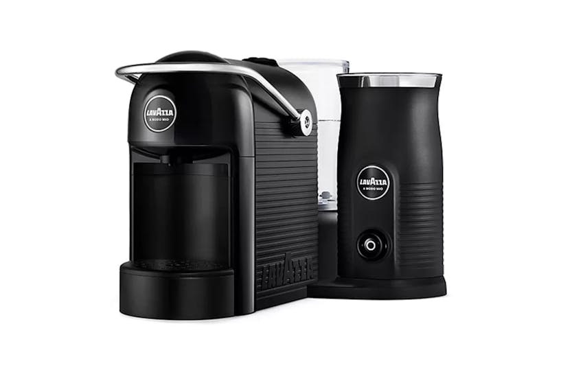 Experience the authentic taste of Italian espresso and cappuccino with the Lavazza a Modo Mio Jolie & Milk Coffee Machine in sleek black. This elegant and quiet machine allows you to easily create a variety of coffee recipes using fresh milk, with features such as a quick 35-second heat-up time, automatic shut-off, and the ability to make espresso, long espresso, cappuccino, and latte macchiato. With an alert for an empty water tank and a drawer that can hold up to 5 used caps, this machine combines convenience and style for a premium coffee experience at home.
