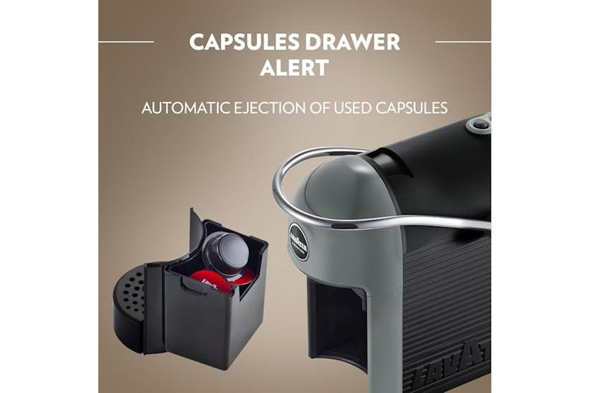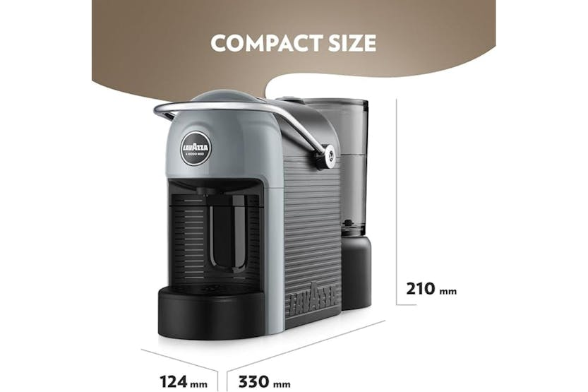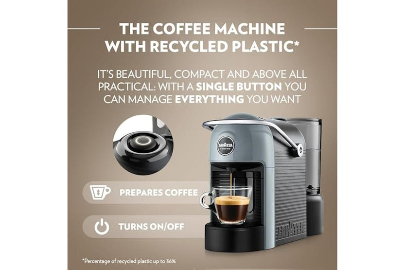 Introducing the Lavazza a Modo Mio Jolie Evo Coffee Machine in Sky Grey. This sustainable and compact model, made with recycled plastic, brings a touch of Italian style to your kitchen. Enjoy a quiet and intense coffee experience with this cheerful and colourful addition to your décor. Elevate your coffee routine with the smallest Lavazza A Modo Mio model available.